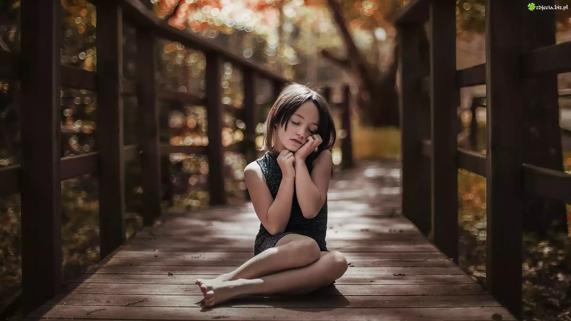 Zdjęcie Dziewczynka, Zamknięte, Oczy, Sukienka, Pomost