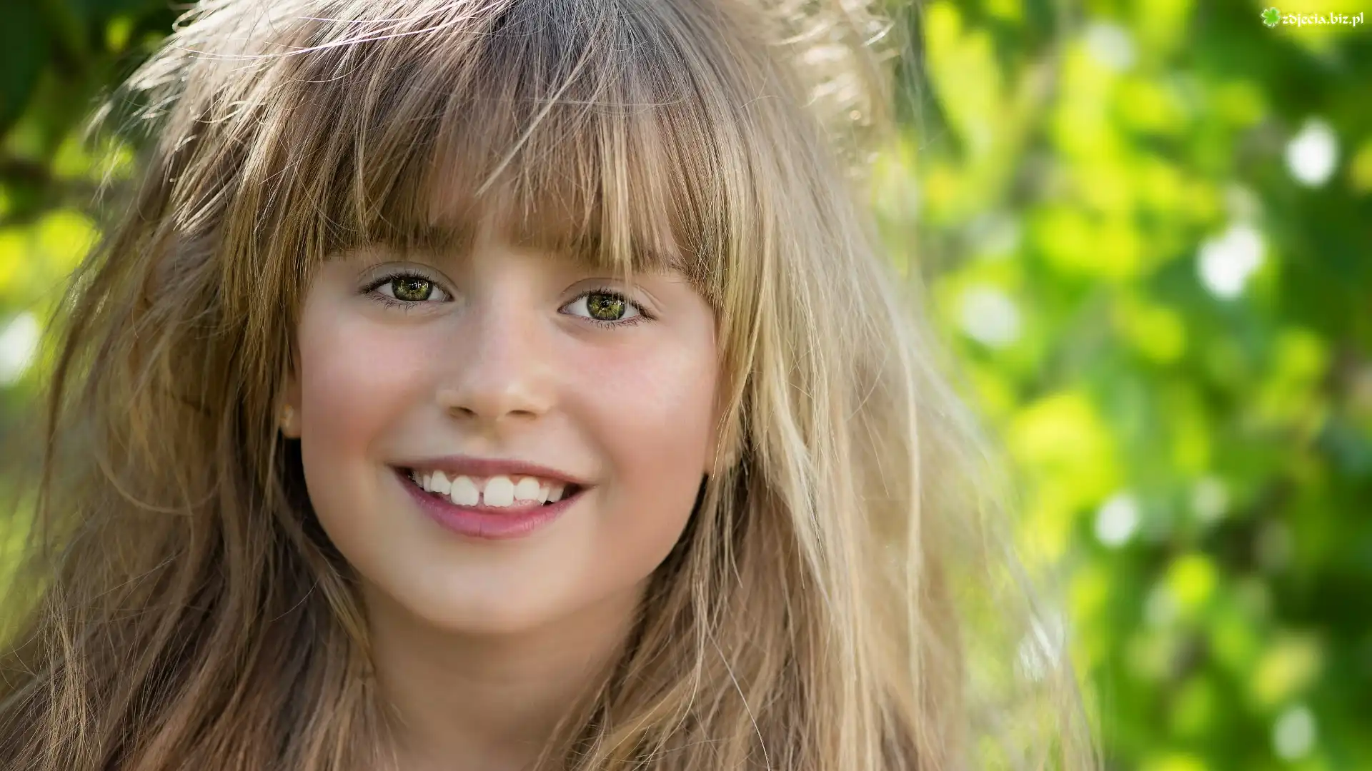 Zdjęcie Dziewczynka, Długie, Włosy, Blondynka, Twarz, Uśmiech