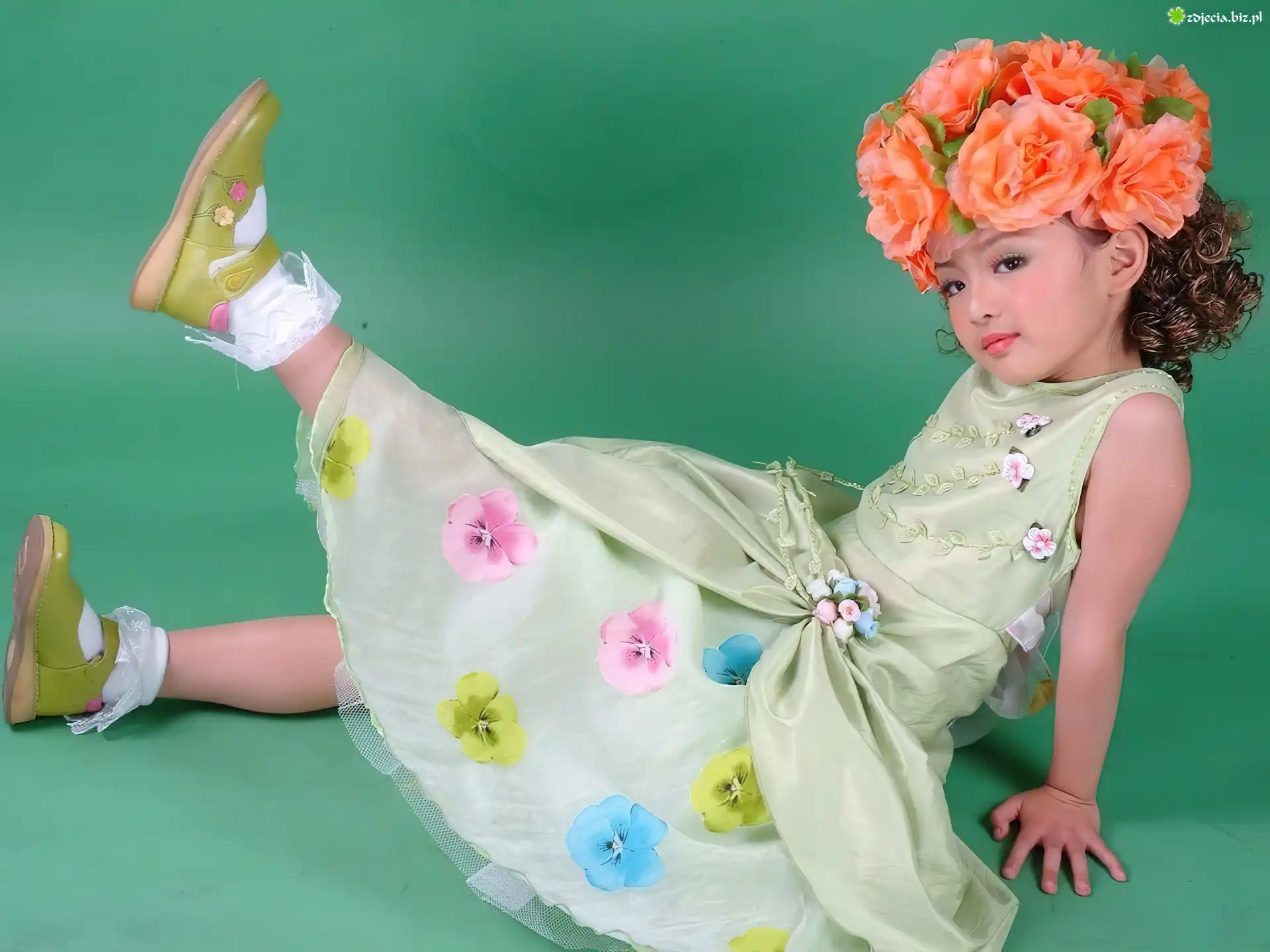 Zdjęcie, Dziewczynka, Wianek, Sukienka, W, Kwiaty