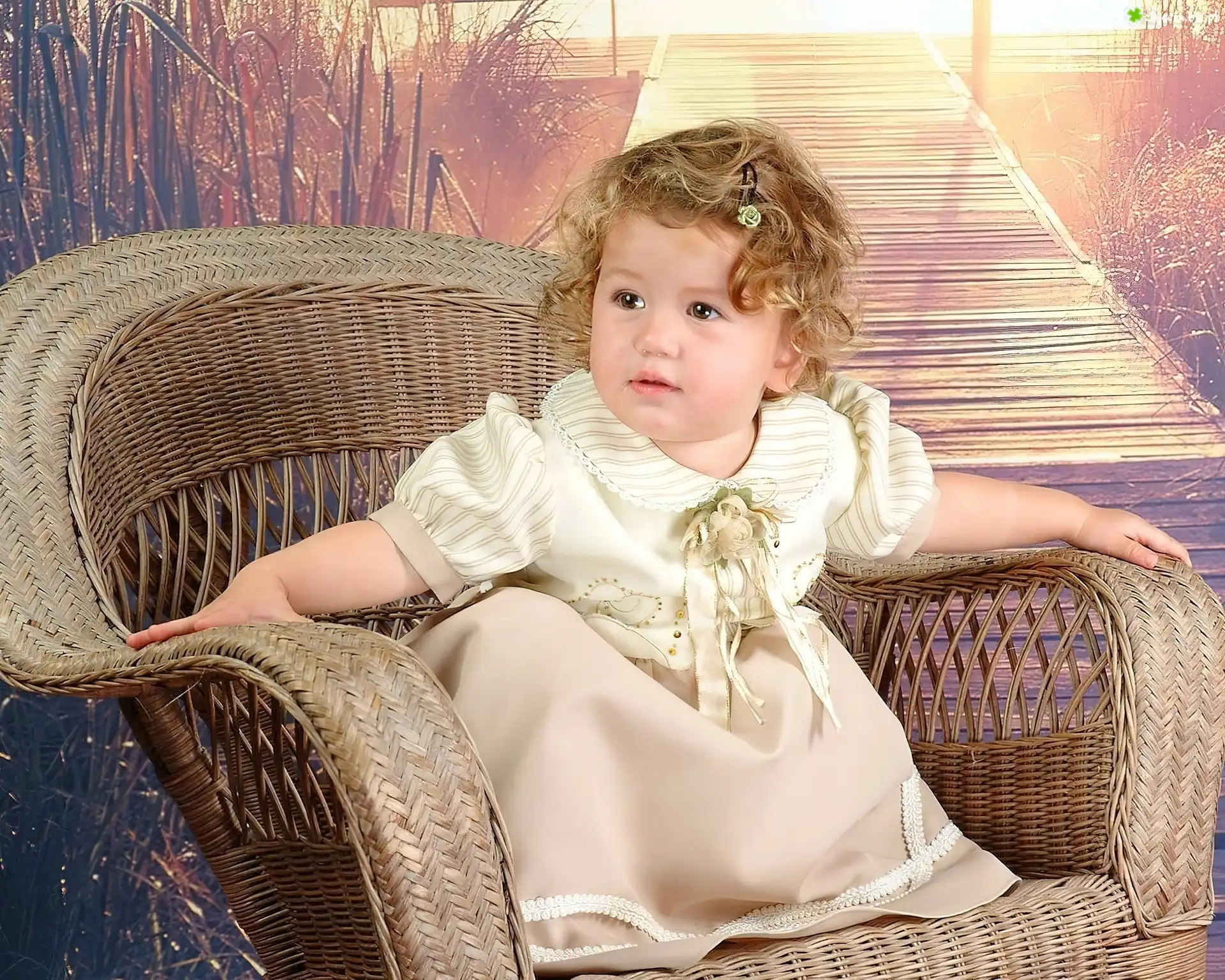Zdjęcie Dziewczynka, Fotel, Wiklinowy, Loczki