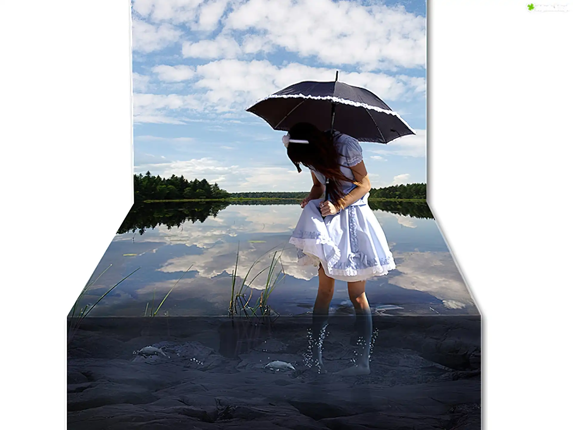 Zdjęcie Dziewczynka, Parasol, Woda, Grafika 4D