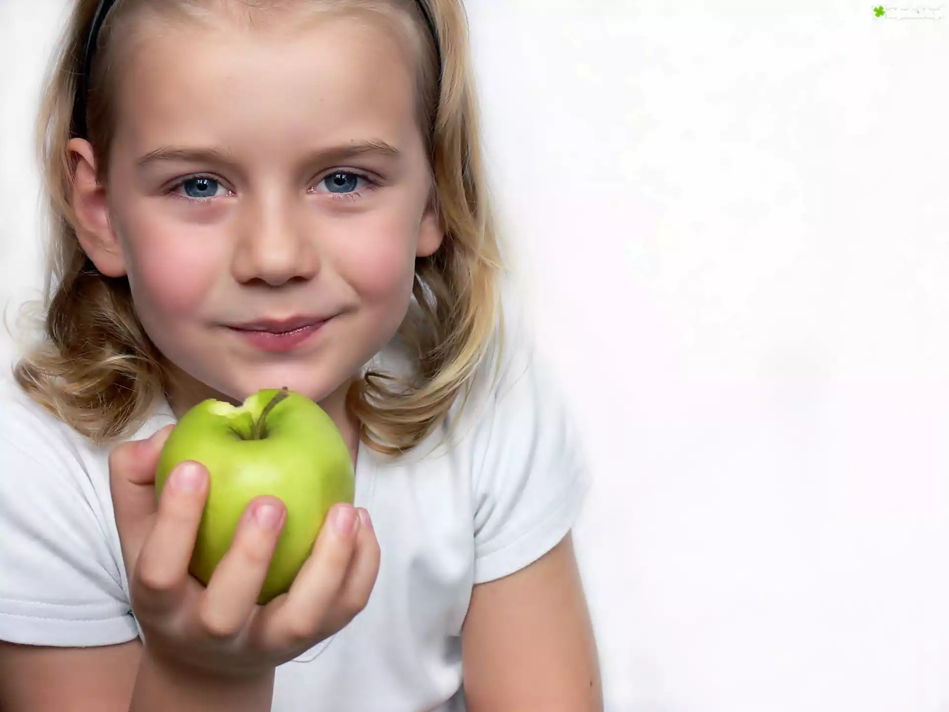 Zdjęcie Dziewczynka, Uśmiech, Zielone, Jabłko
