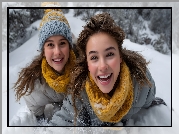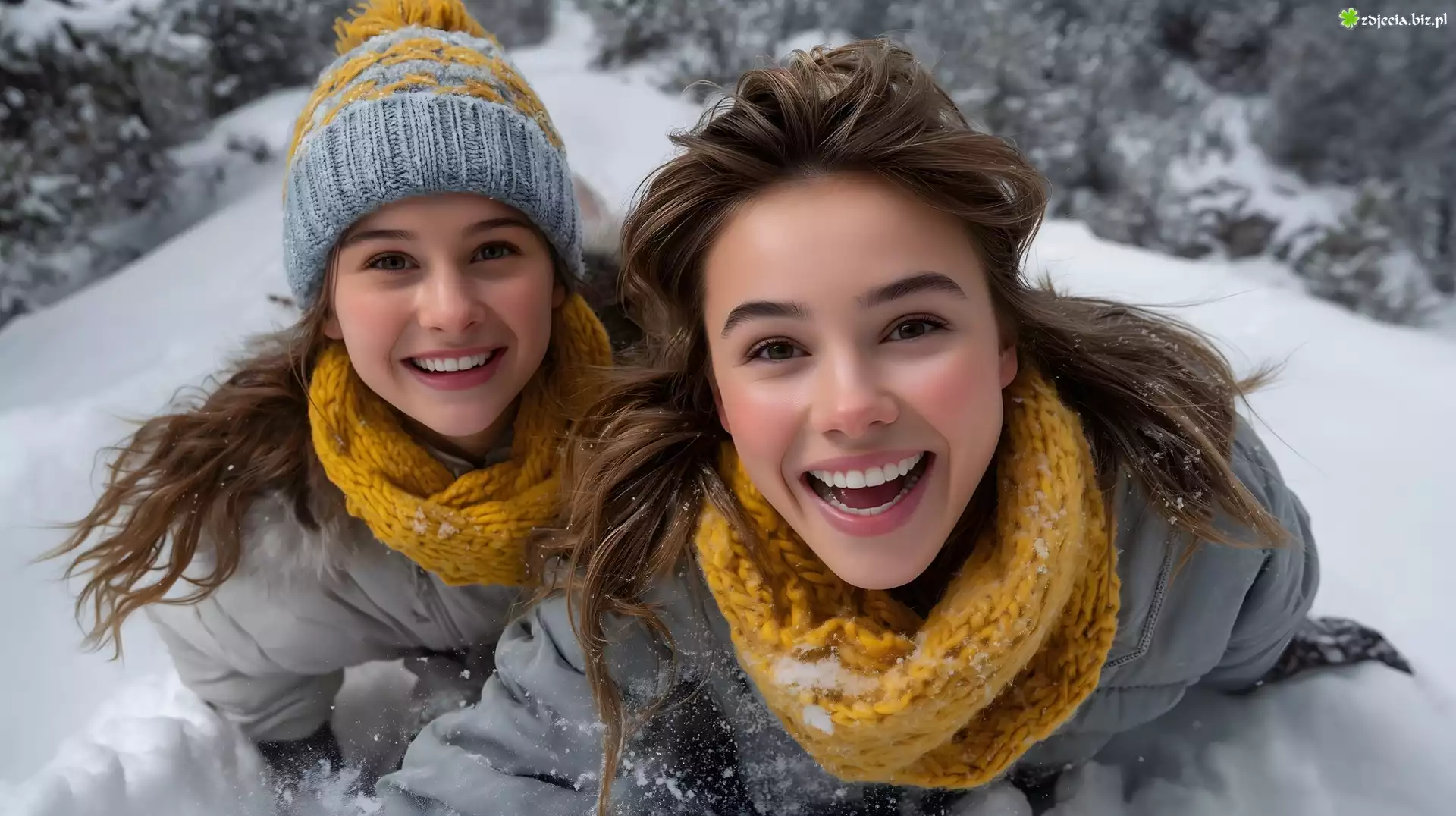 Zdjęcie Dwie, Młode, Roześmiane, Dziewczyny, Szaliki, Zima