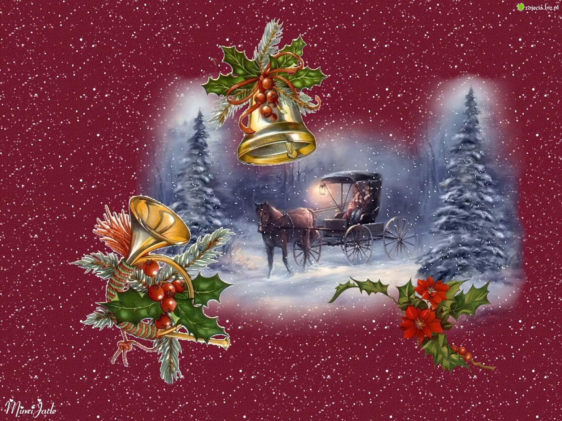 Zdjęcie dzwonki, koń, dorożka, choinka