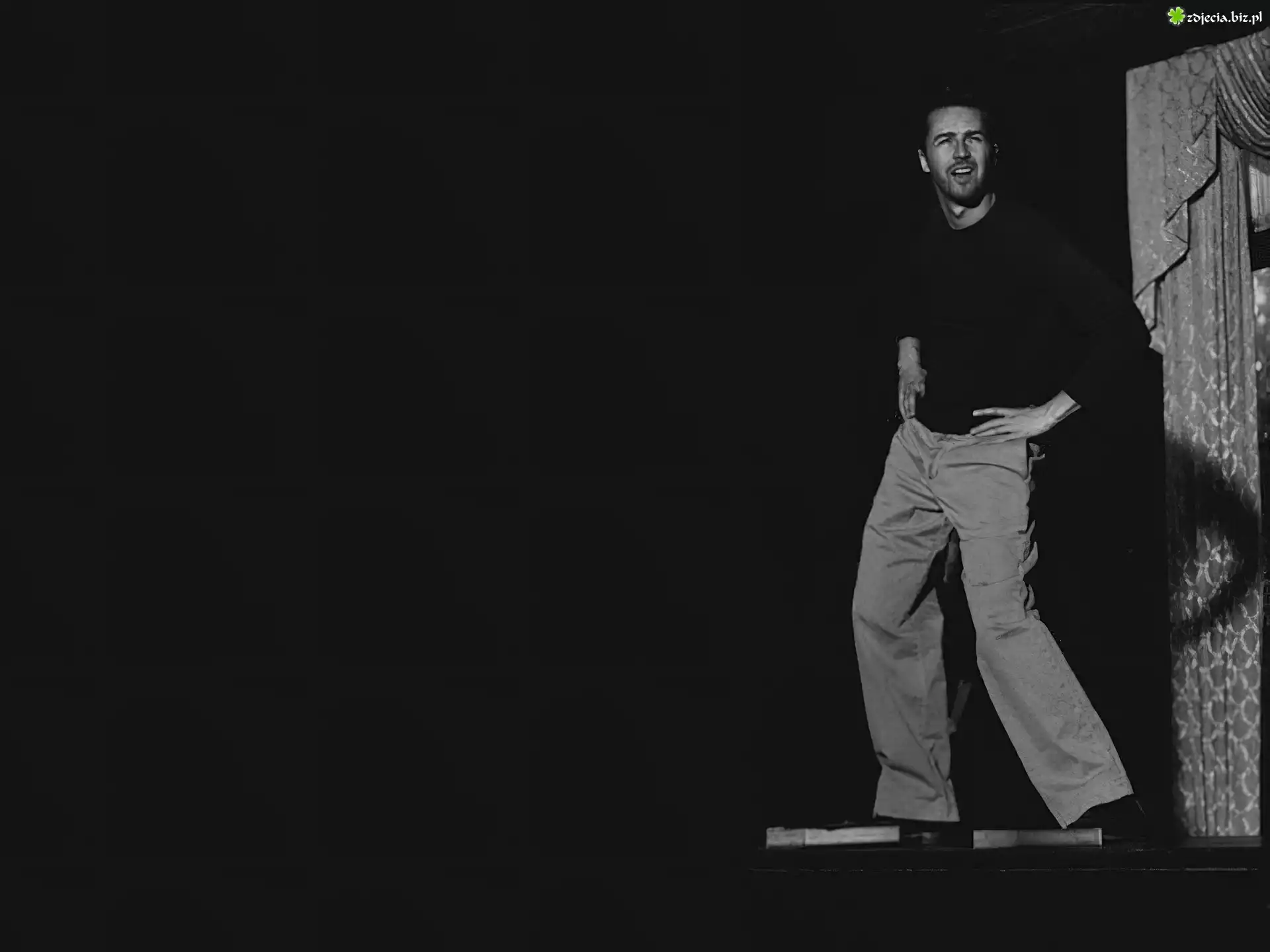 Edward Norton,beżowe spodnie Edward Norton, Brad Pitt Edward Norton,biała koszula, krawat Edward Norton, twarze