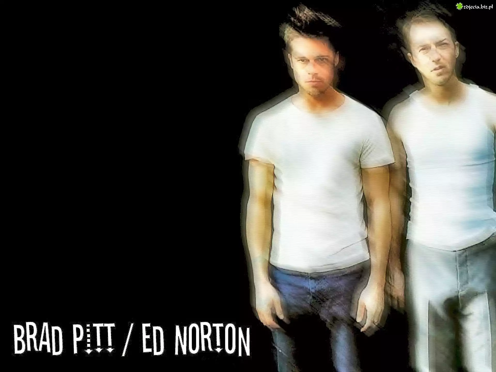 Edward Norton,biała koszula, krawat Edward Norton,beżowe spodnie Edward Norton, Brad Pitt Edward Norton, twarze