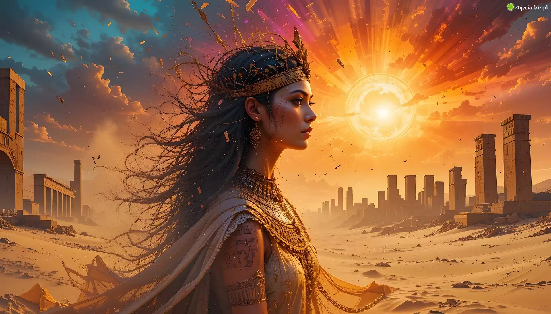 Zdjęcie Kobieta, Egipcjanka, Budowle, Pustynia, Słońce