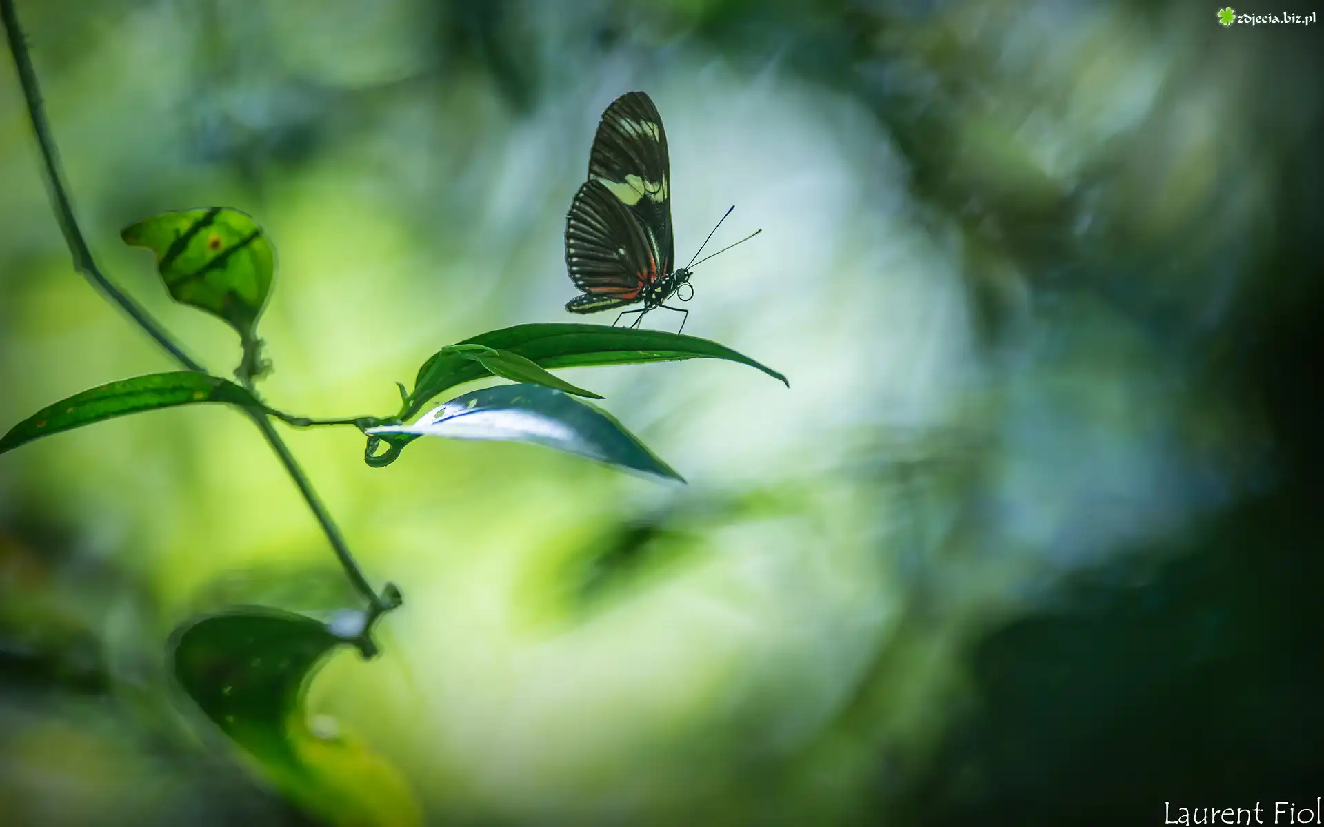 Zdjęcie Egzotyczny, Motyl, Heliconius hortense, Gałązka, Liście
