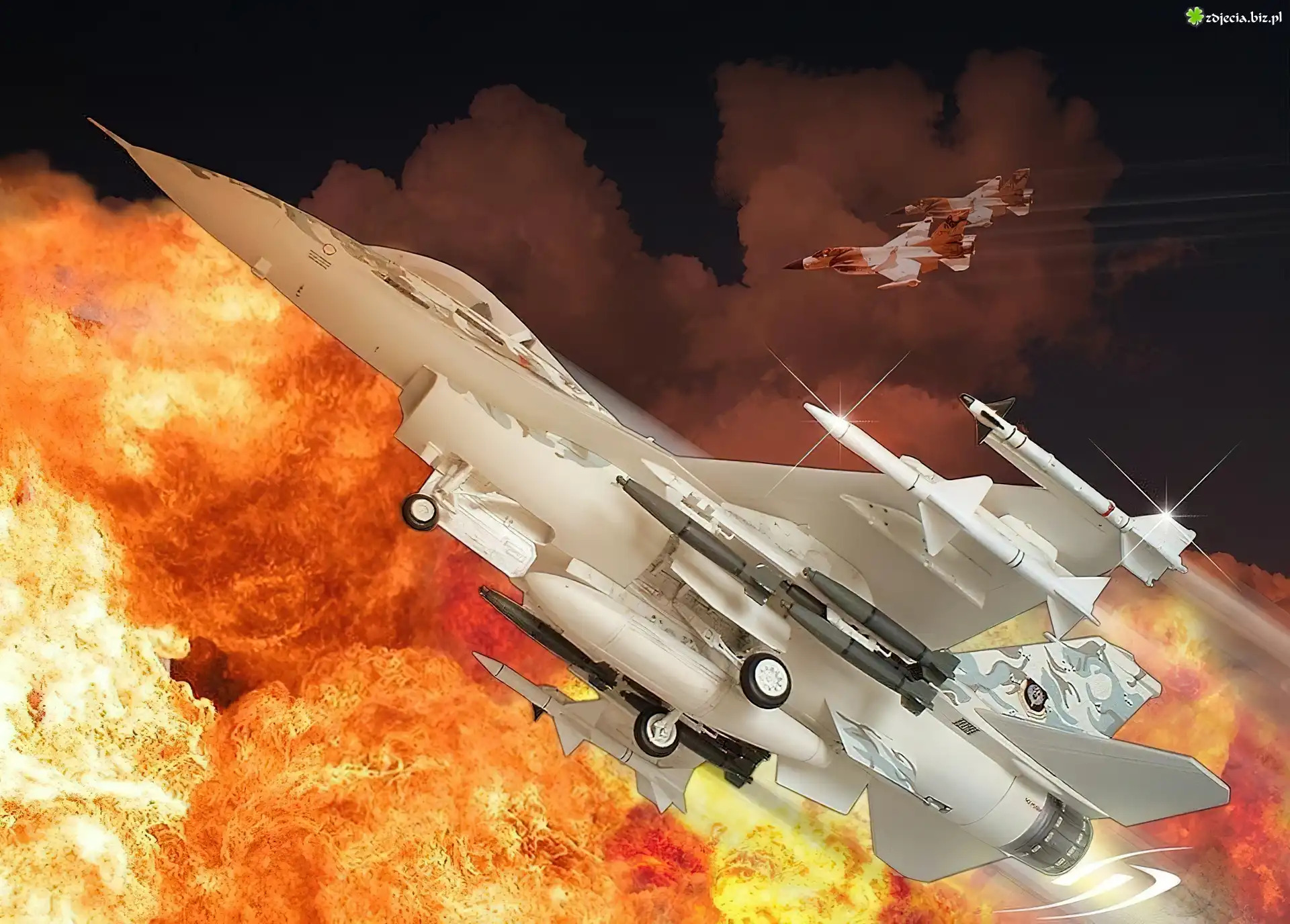 Zdjęcie, F-16, Falcon, Wybuch, Rakiety