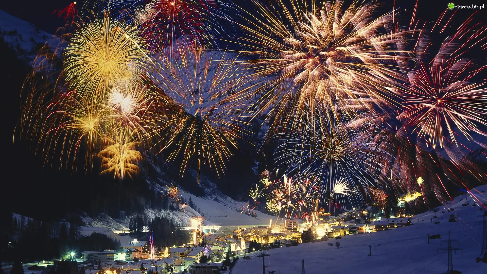 Zdjęcie, Fajerwerki, Sylwester, Miasto nocą