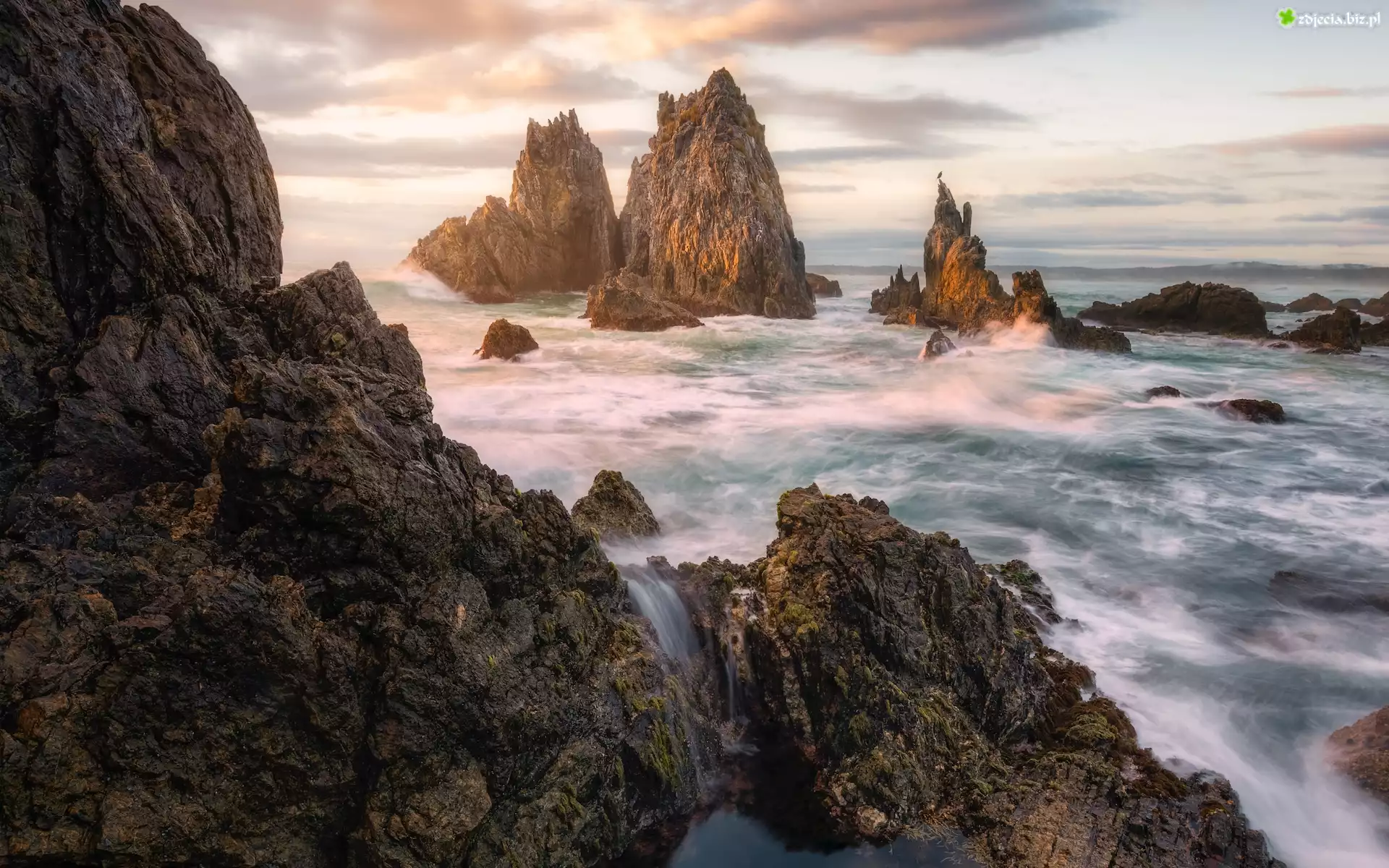 Zdjęcie, Morze, Fale, Skały, Formacja Camel Rock, Bermagui, Australia