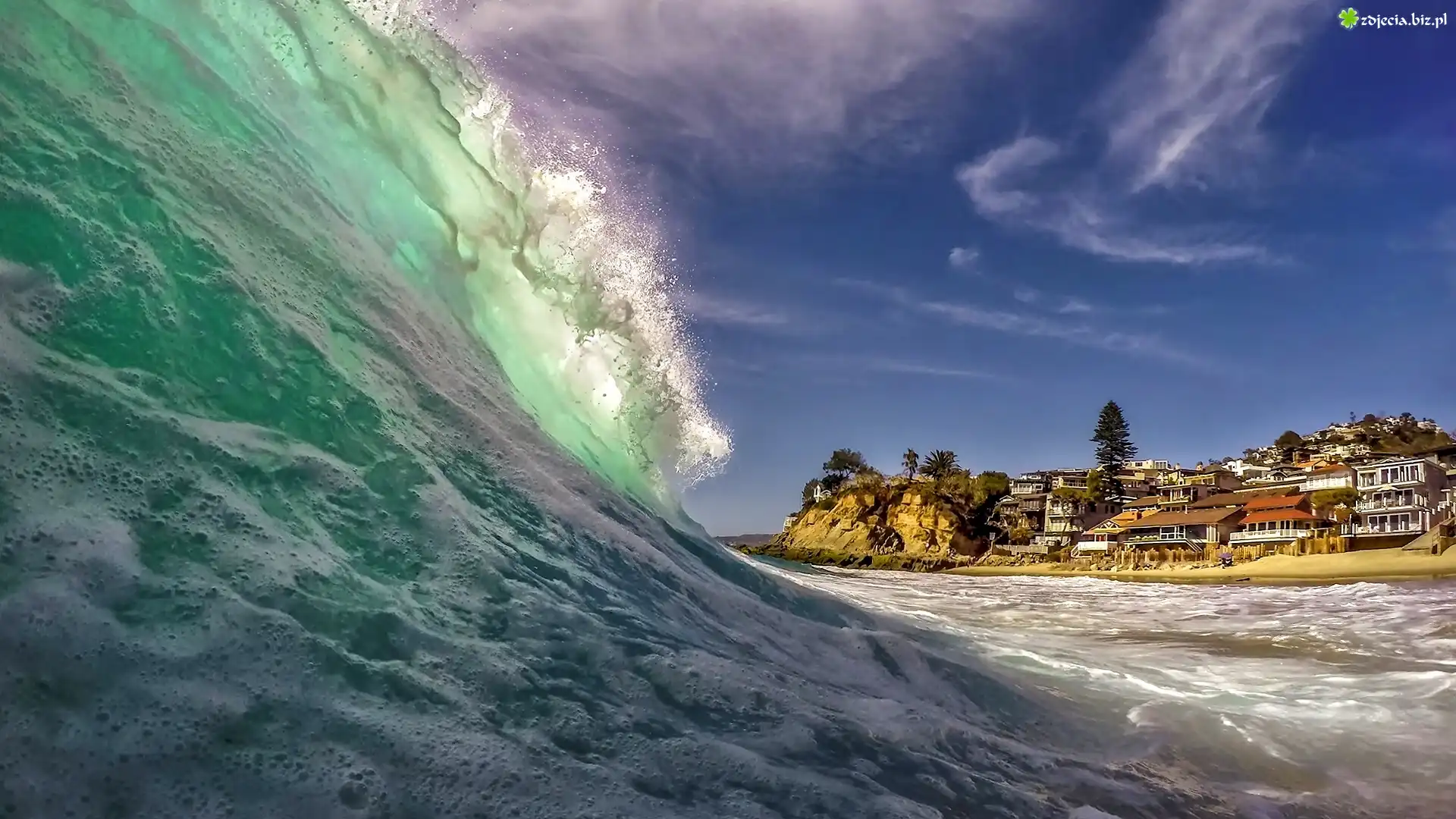 Zdjęcie Morze, Fale, Wybrzeże, Domy, Laguna Beach, Kaifornia