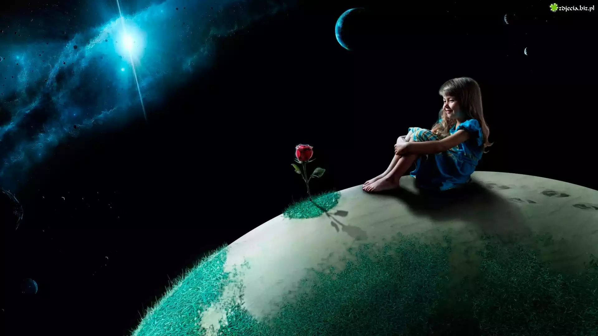 Zdjęcie Fantasy, Kosmos, Planety, Dziewczynka, Róża