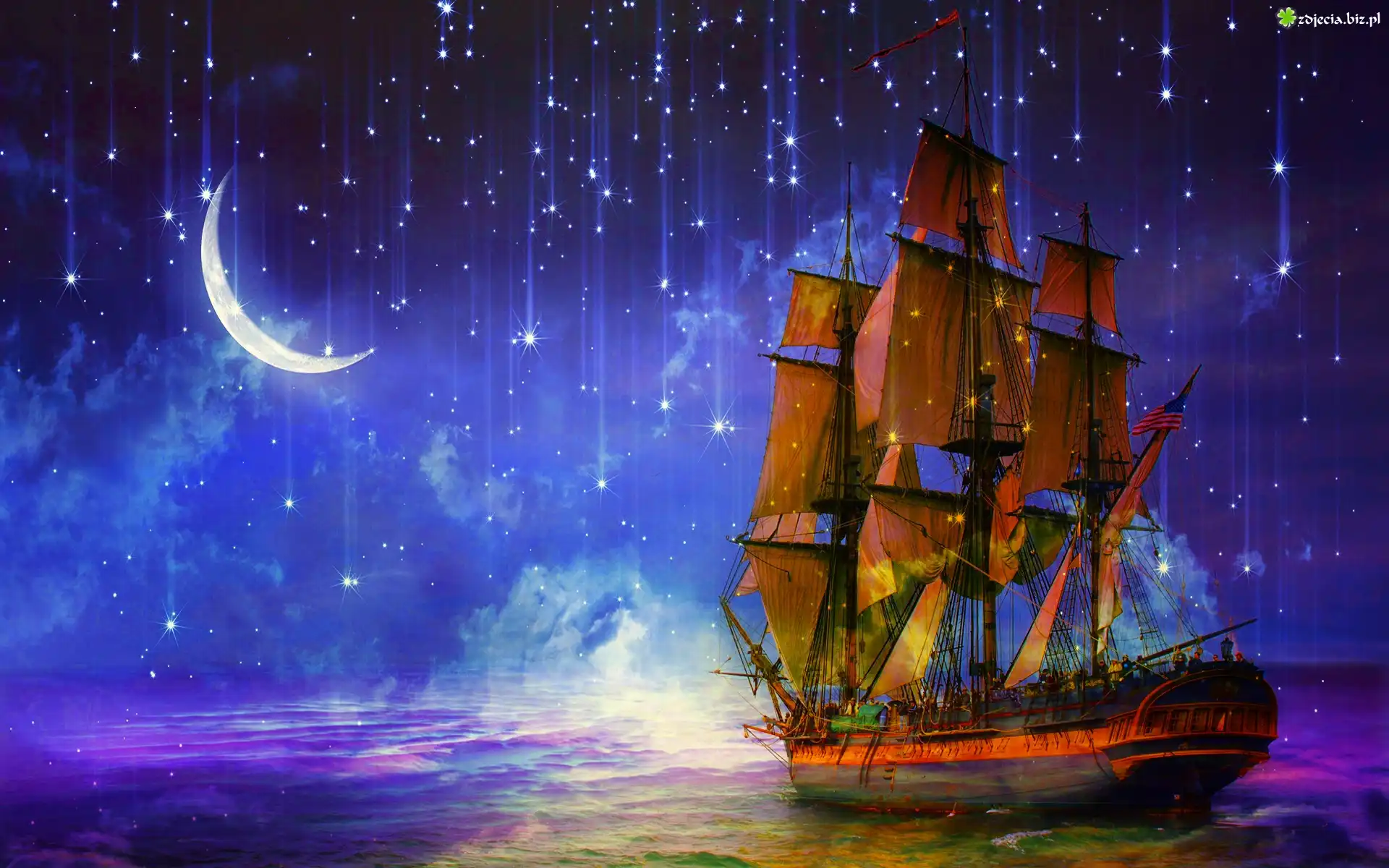 Zdjęcie Fantasy, Noc, Gwiazdy, Żaglowiec