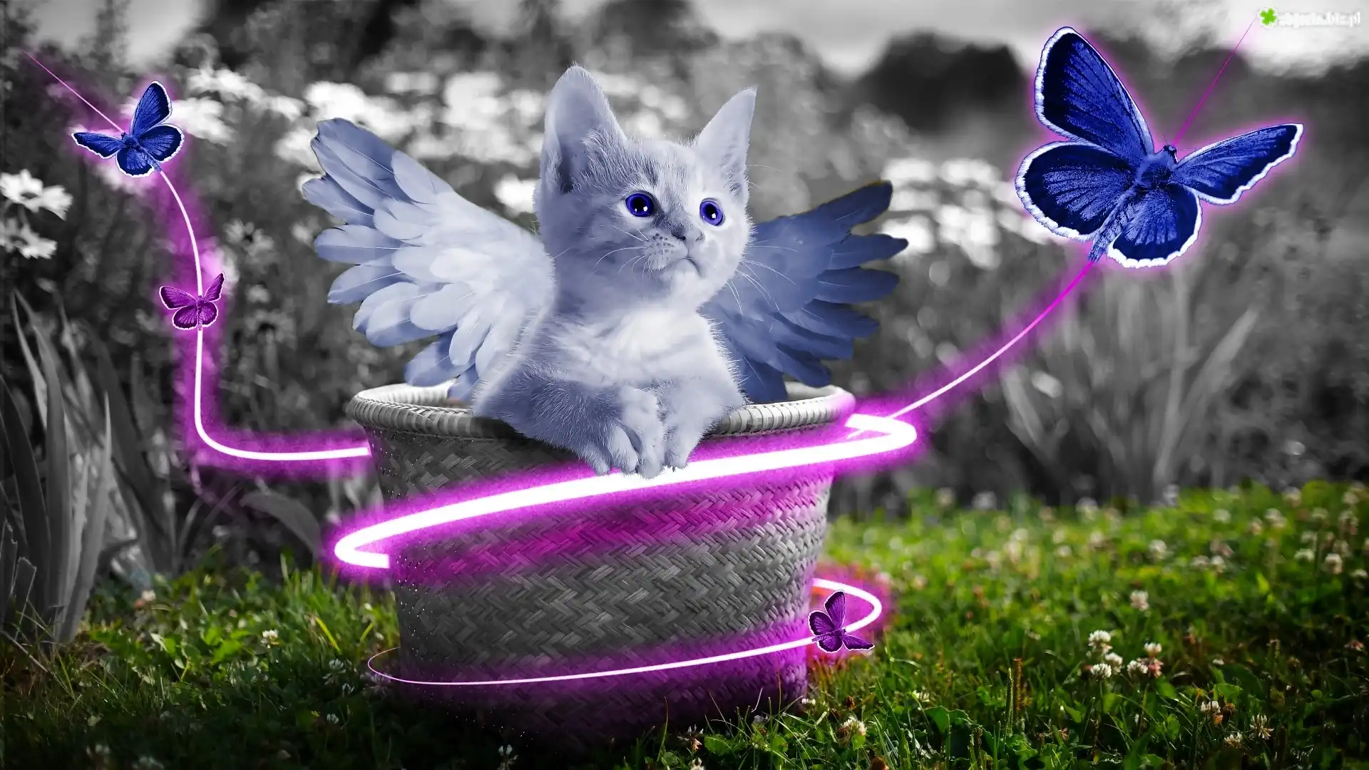 Zdjęcie Fantasy, Słodki, Kotek, Skrzydła, Motyle