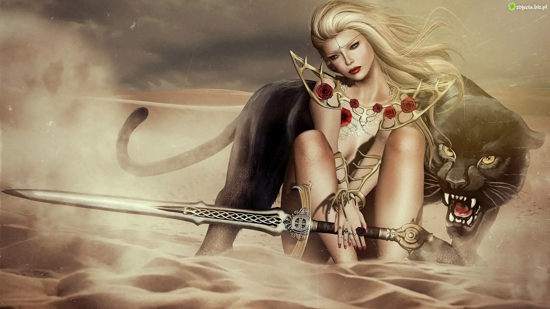 Zdjęcie Fantasy, Dziewczyna, Wojowniczka, Pantera