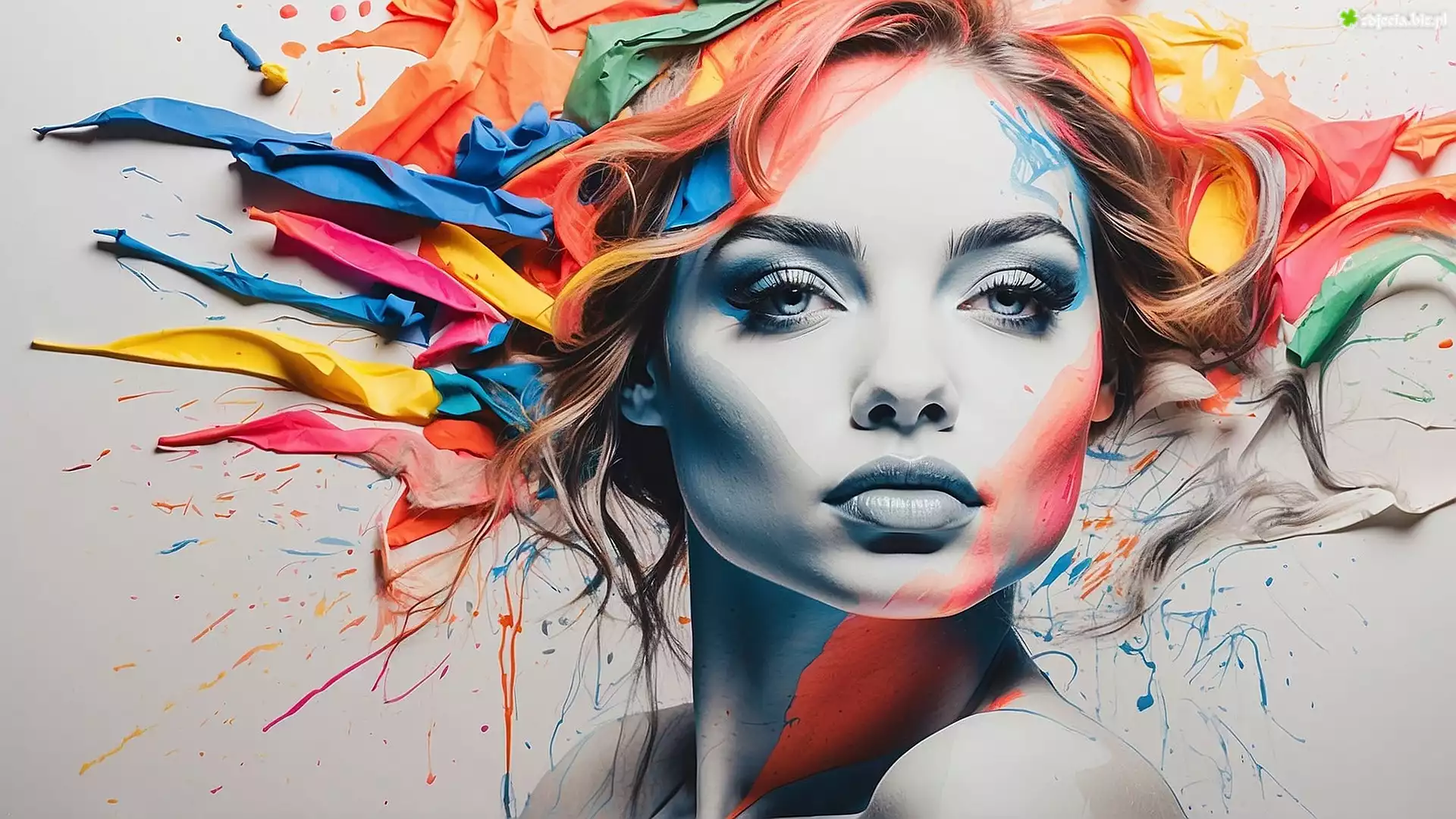 Zdjęcie Grafika, Kobieta, Kolorowa, Farba