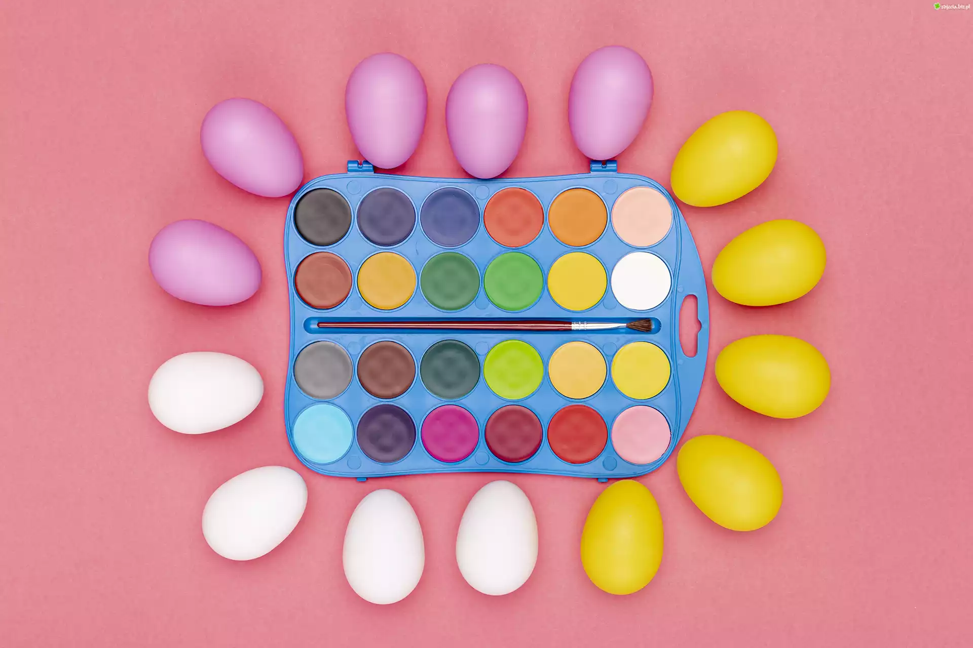 Zdjęcie, Wielkanoc, Farbki, Pędzel, Kolorowe, Jajka