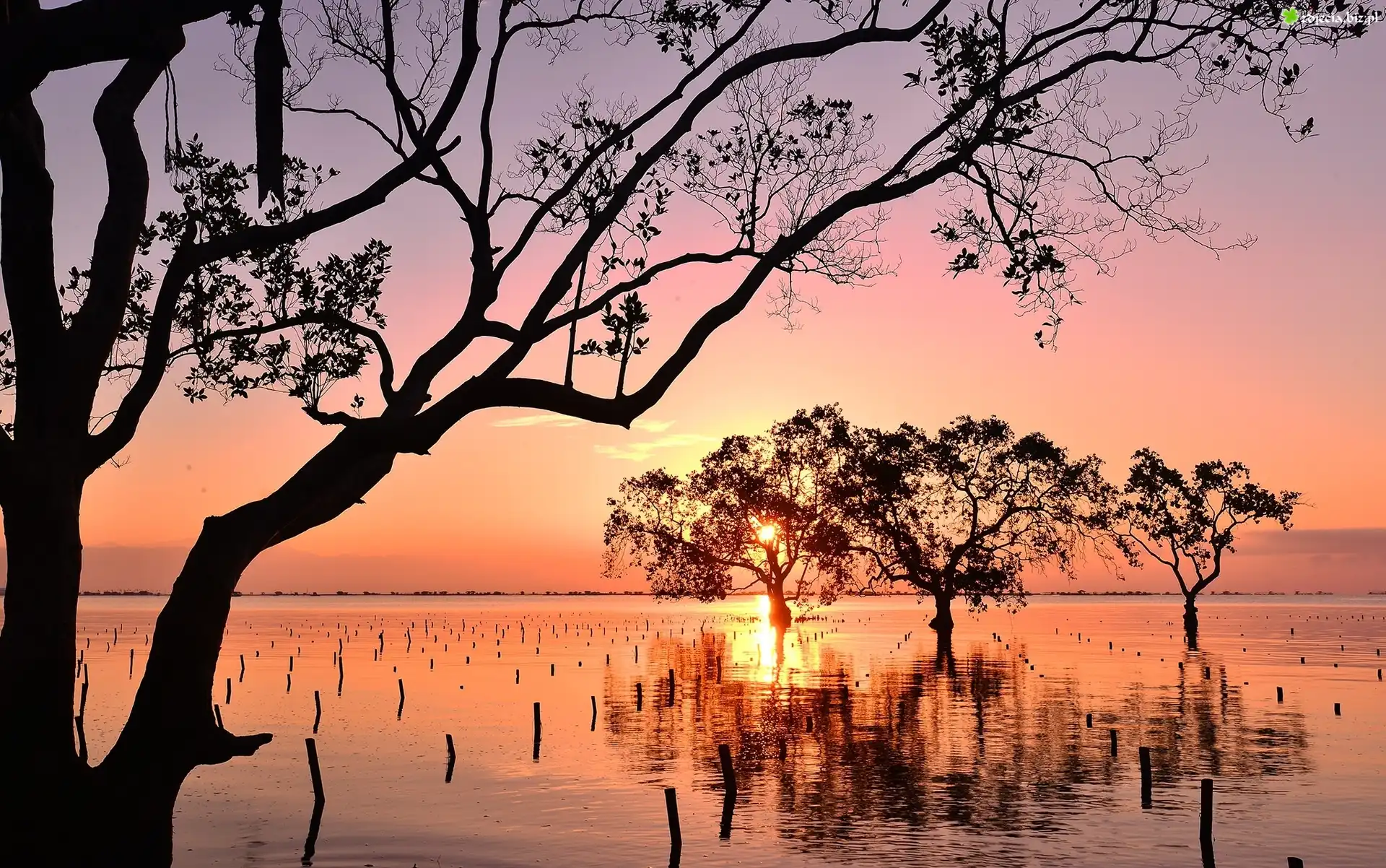 Zdjęcie, Filipiny, Zachód słońca, Drzewa