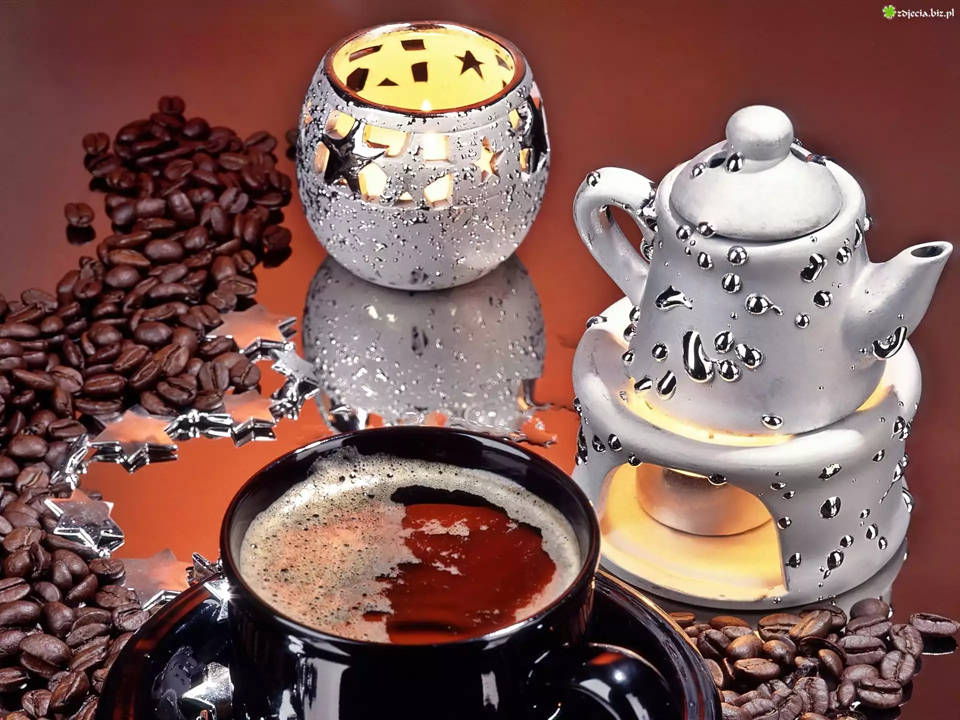 Zdjęcie Filiżanka, Kawy, Podgrzewacz, Czajnik, Cukierniczka
