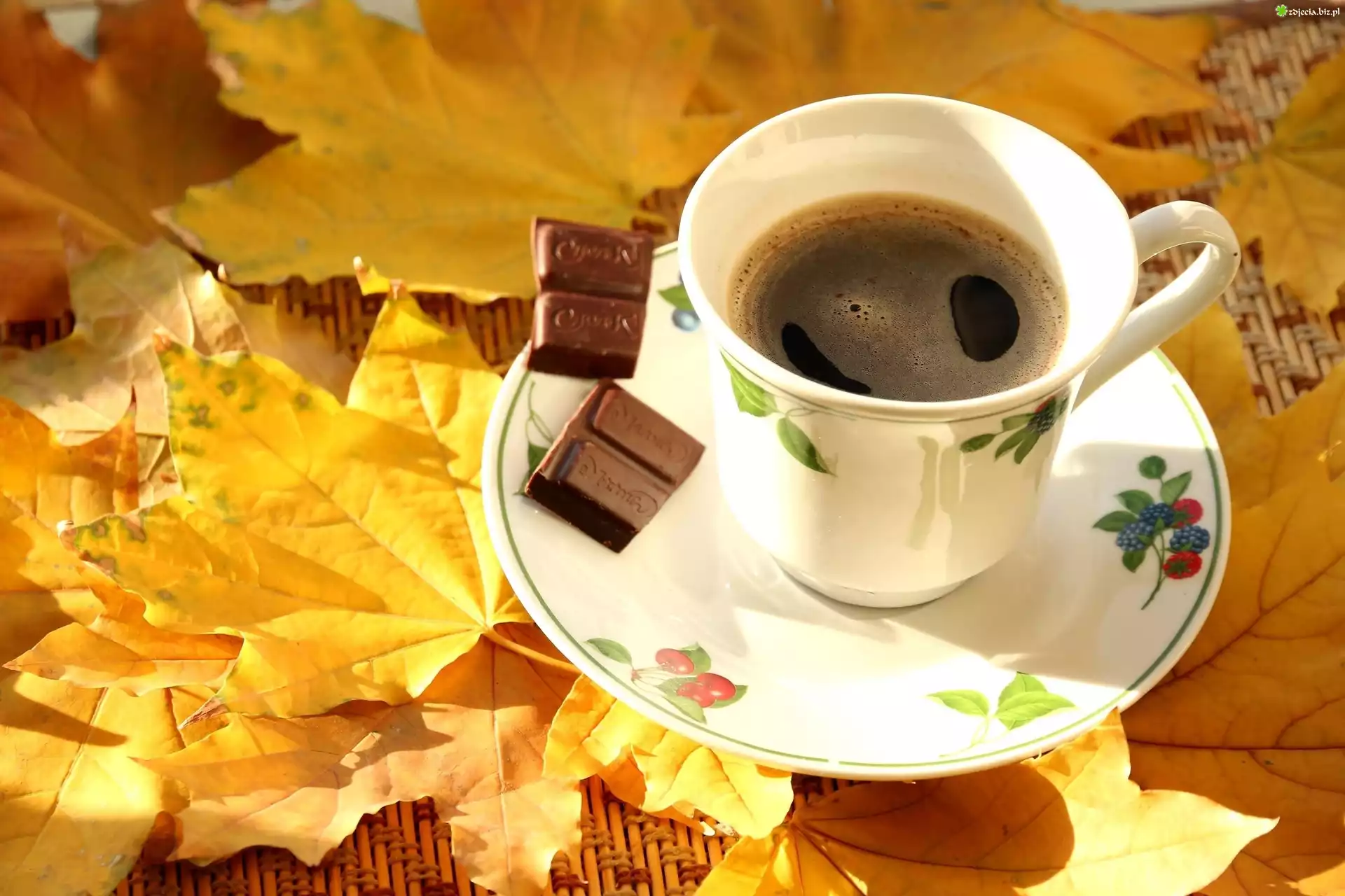 Zdjęcie Filiżanka, Kawy, Czekolada, Klonowe, Liście, Jesienne