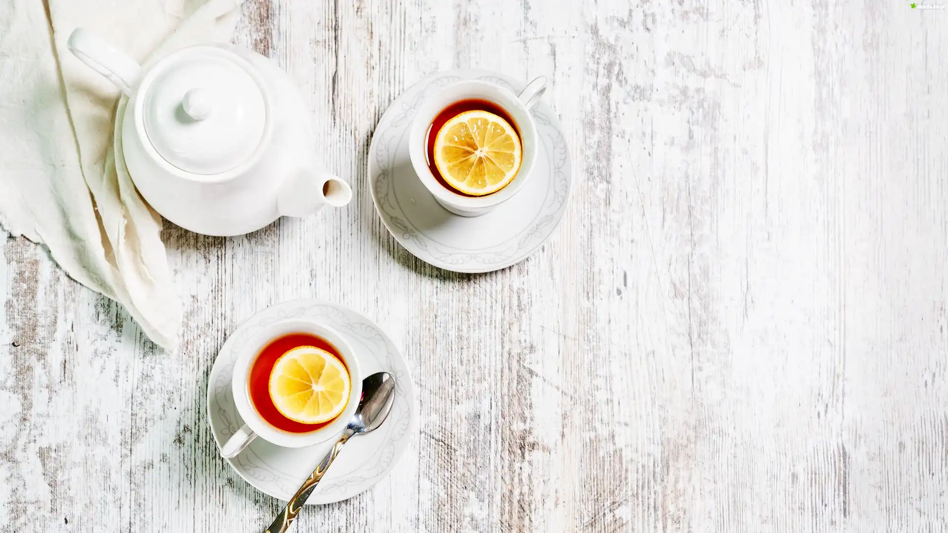 Zdjęcie, Filiżanki, Czajnik, Herbata, Cytryna