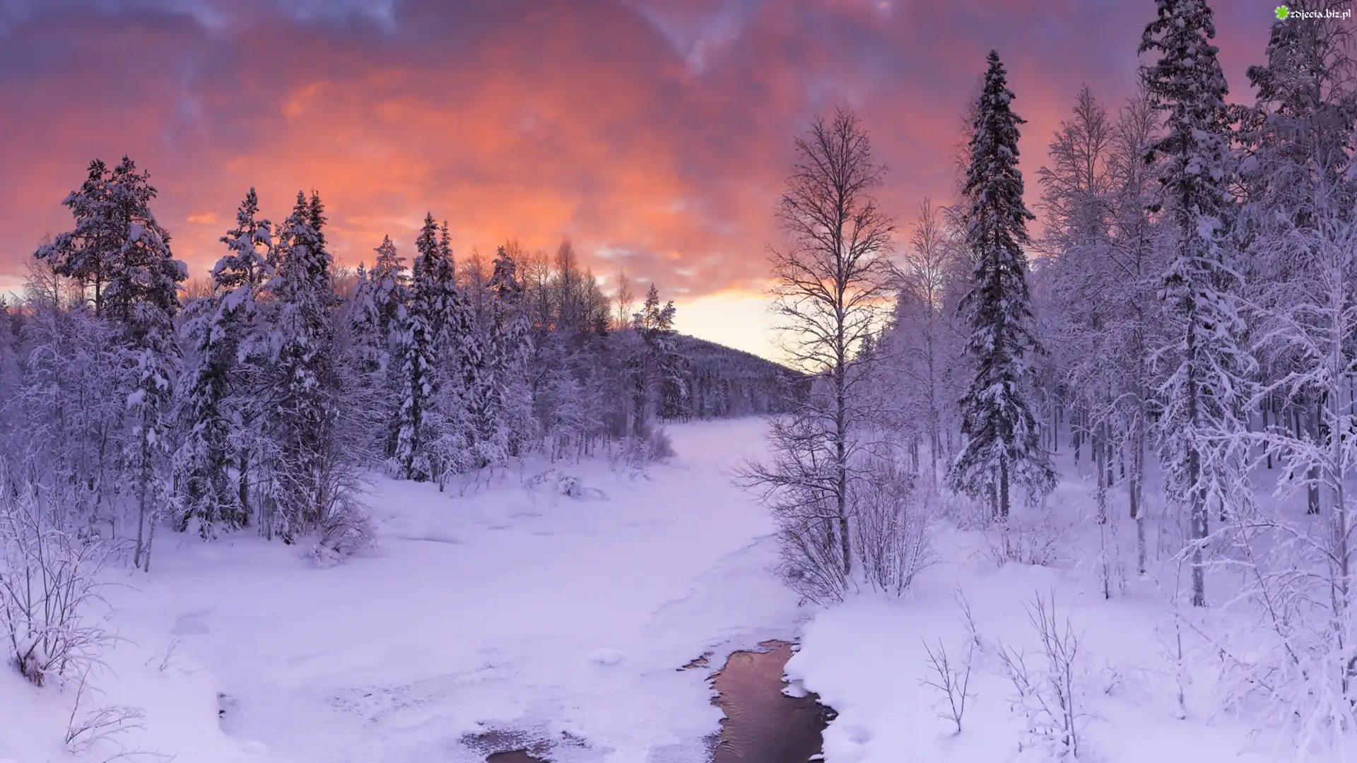 Zdjęcie Finlandia, Laponia, Zima, Las, Rzeczka