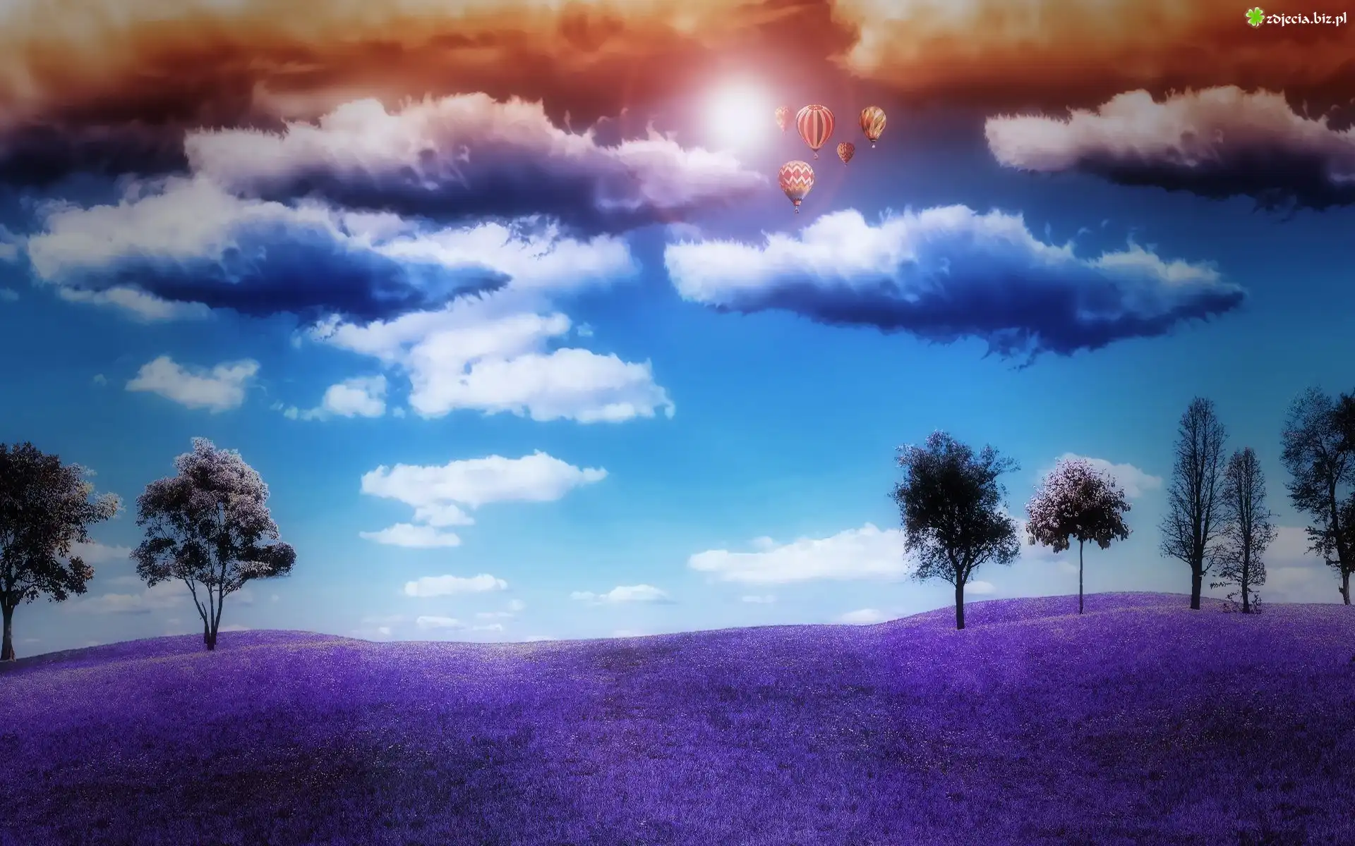 Zdjęcie Fioletowa, Łąka, Chmury, Balony