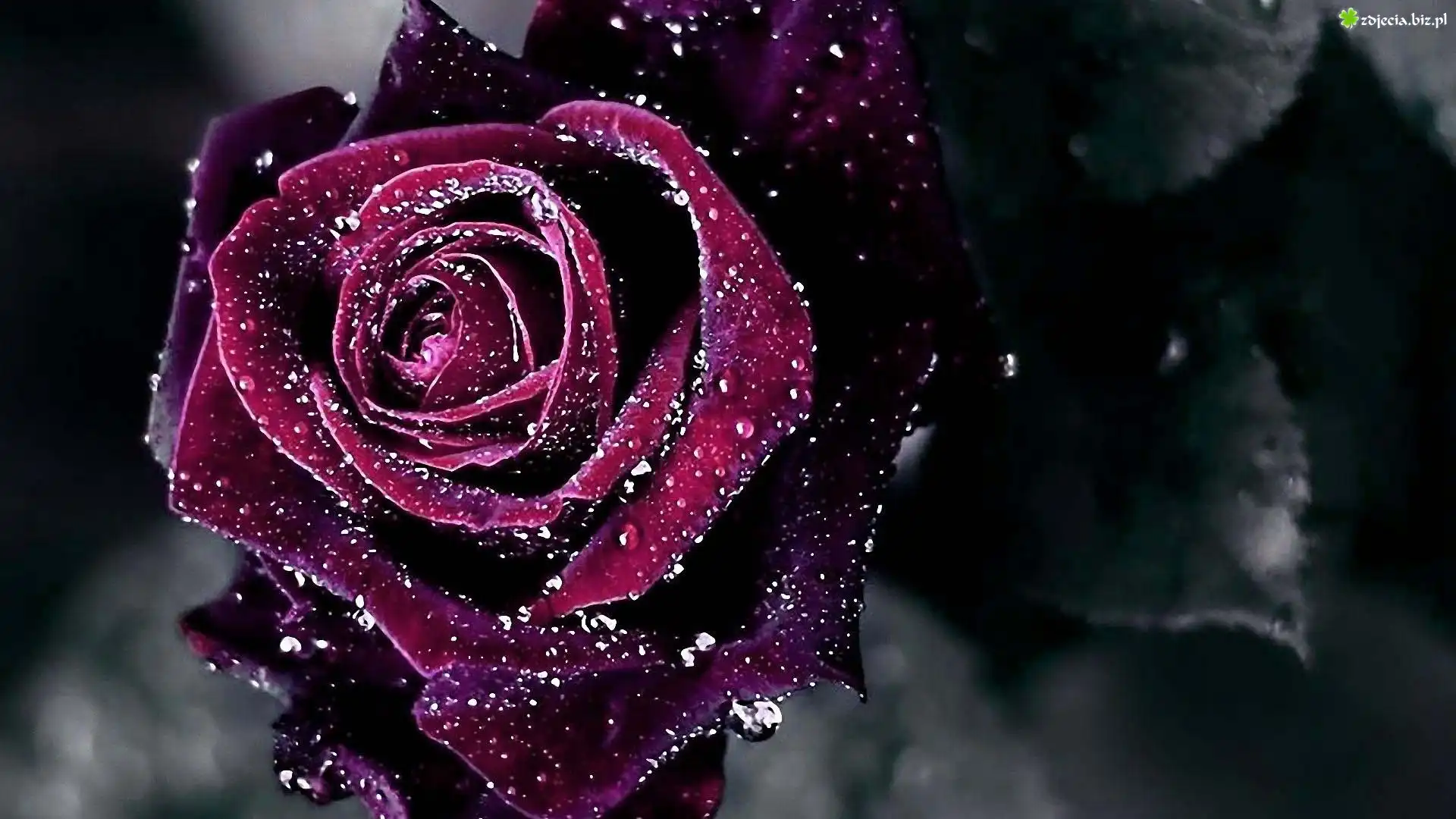 Zdjęcie Fioletowa, Róża, Krople, Wody