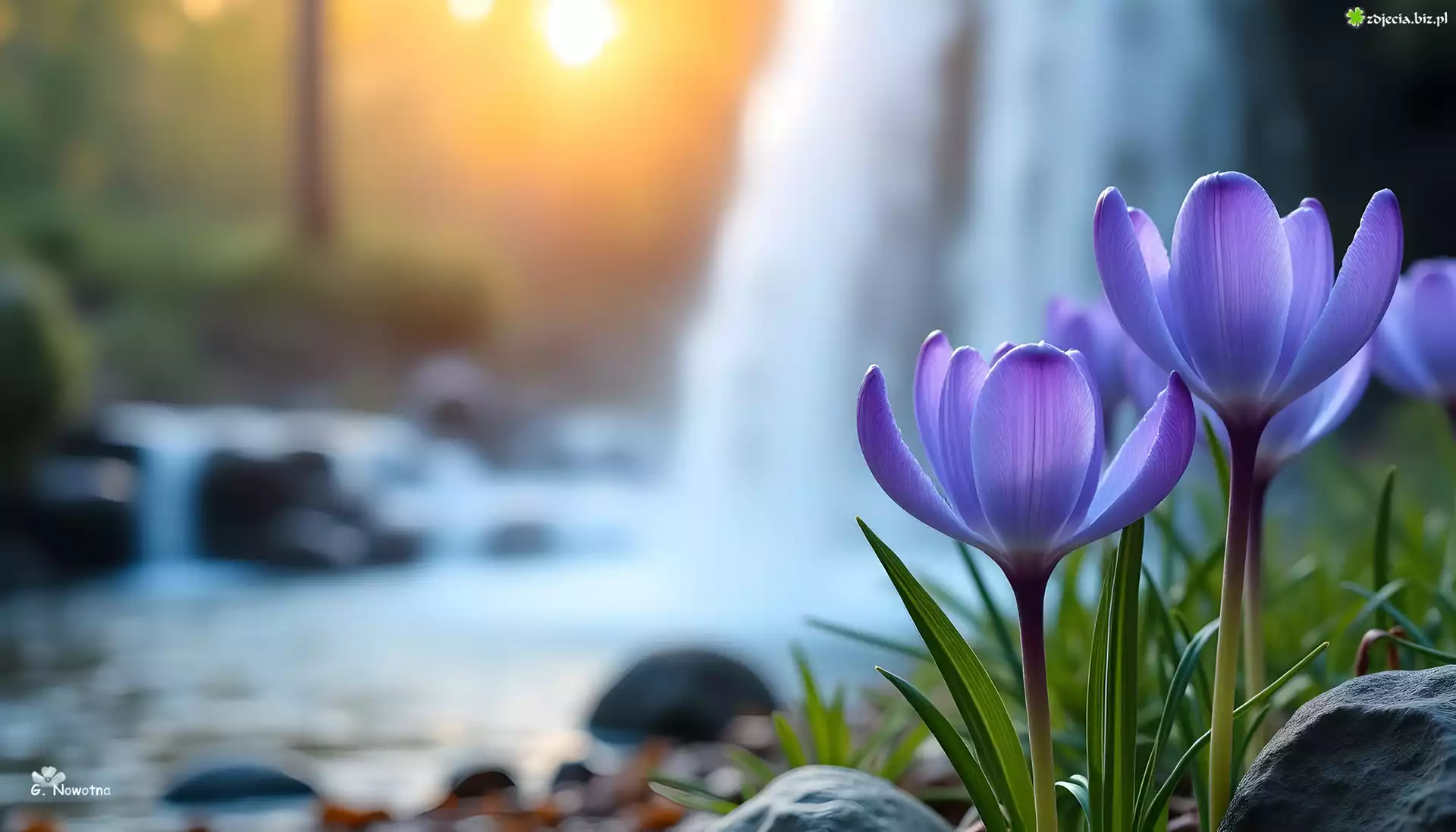 Zdjęcie Rozkwitające, Fioletowe, Krokusy, Kwiaty, Grafika