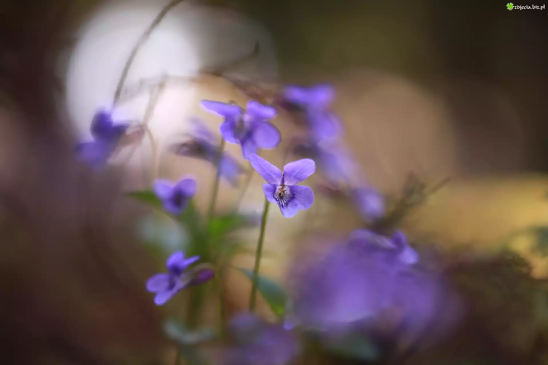 Zdjęcie, Zbliżenie, Fioletowe, Kwiaty, Fiołki wonne