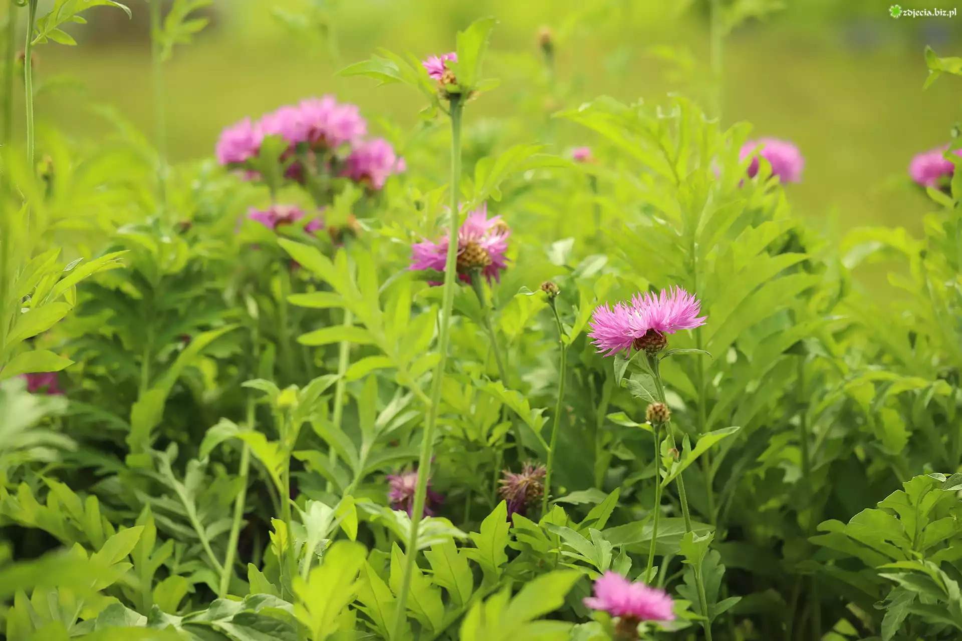 Zdjęcie Fioletowe, Kwiaty, Zielone, Liście, Zbliżenie