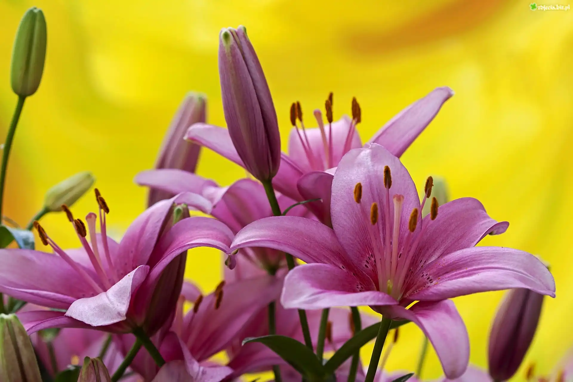 Zdjęcie Fioletowe, Lilie, Żółte, Tło