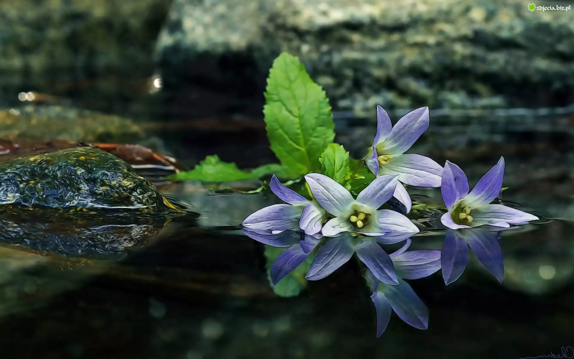 Zdjęcie Fioletowe, Kwiaty, Dzwonki, Woda, Odbicie