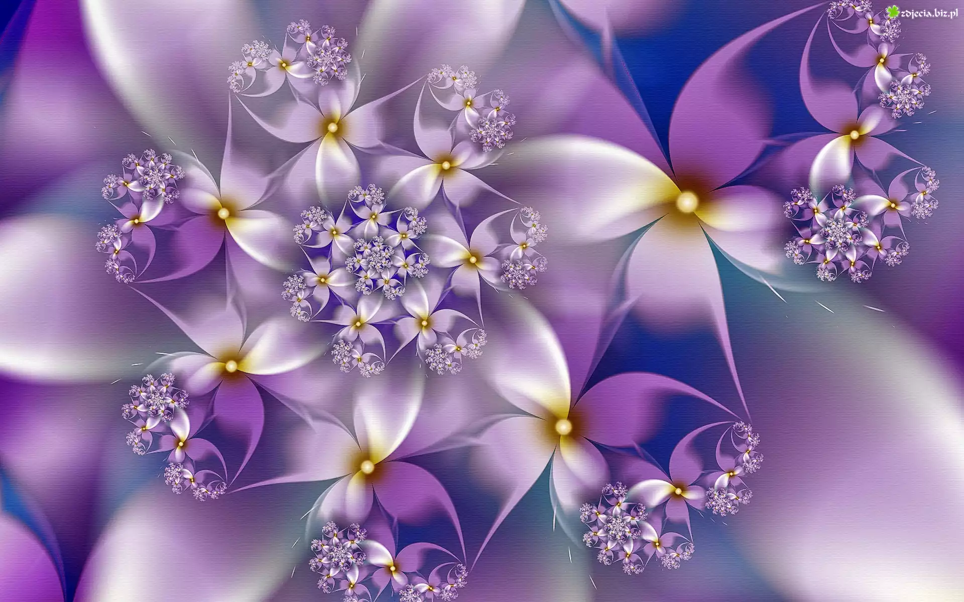 Zdjęcie Fioletowo, Białe, Kwiaty, Fraktal