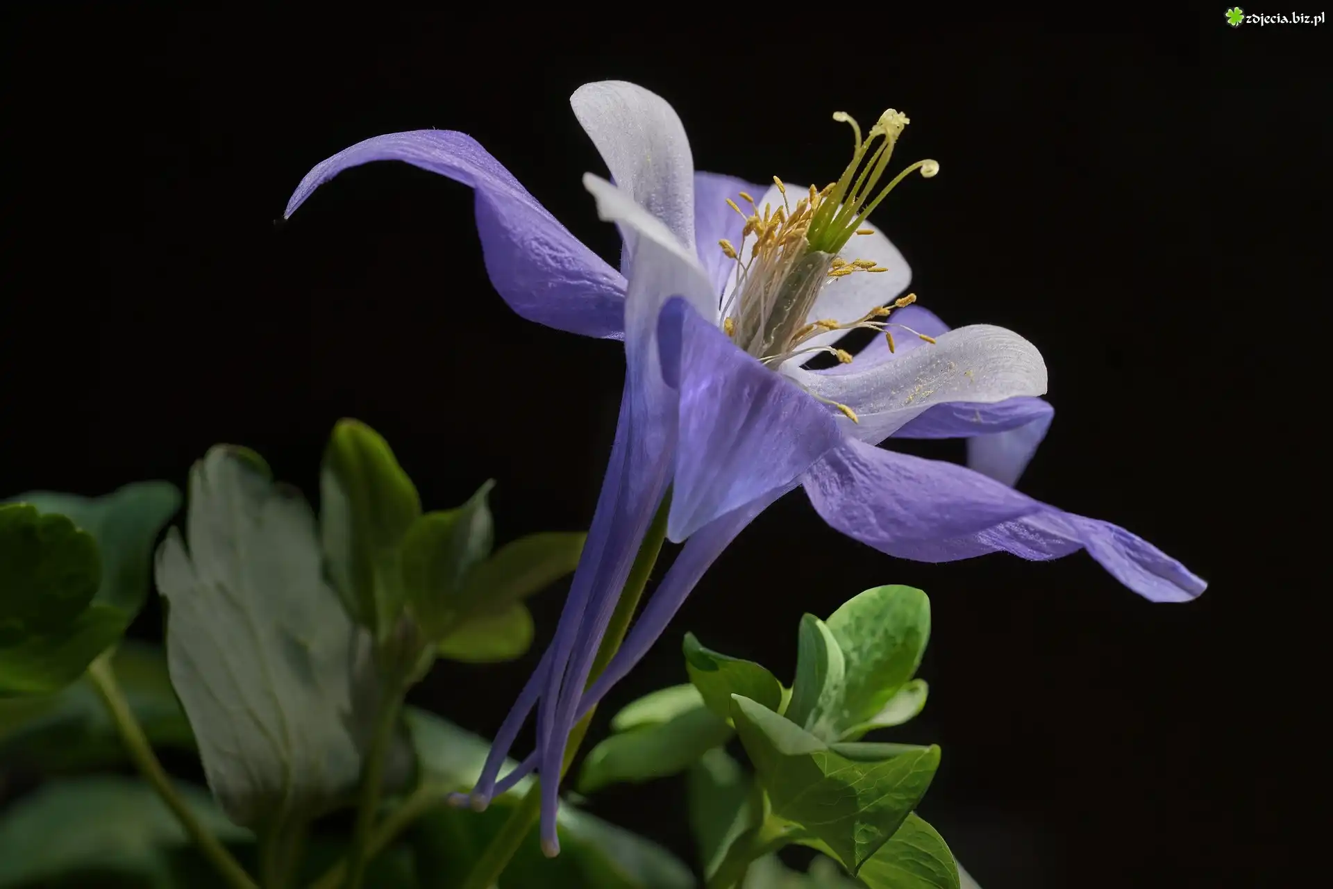 Zdjęcie Fioletowy, Kwiat, Orlik, Liście, Czarne tło