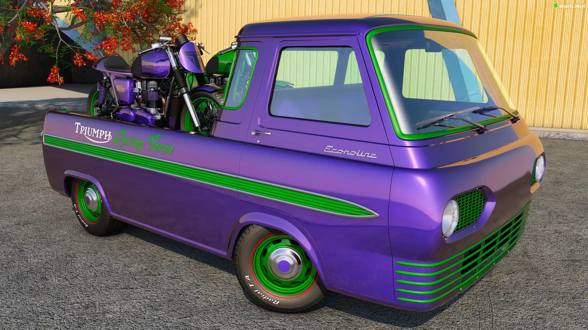 Zdjęcie Fioletowy, Ford Econoline Pickup, Motocykle