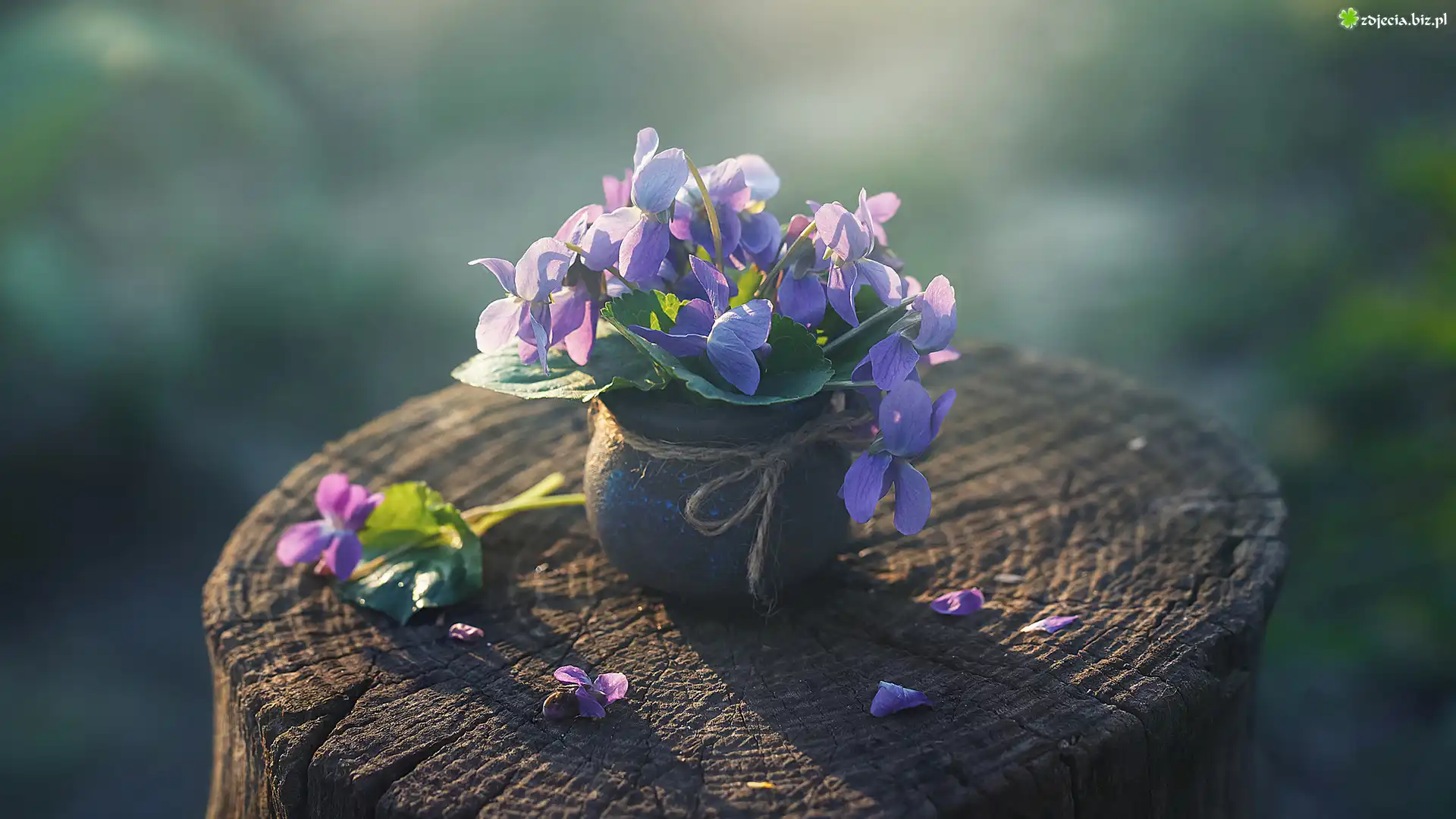 Zdjęcie, Fiołki wonne, Pniak, Wazonik