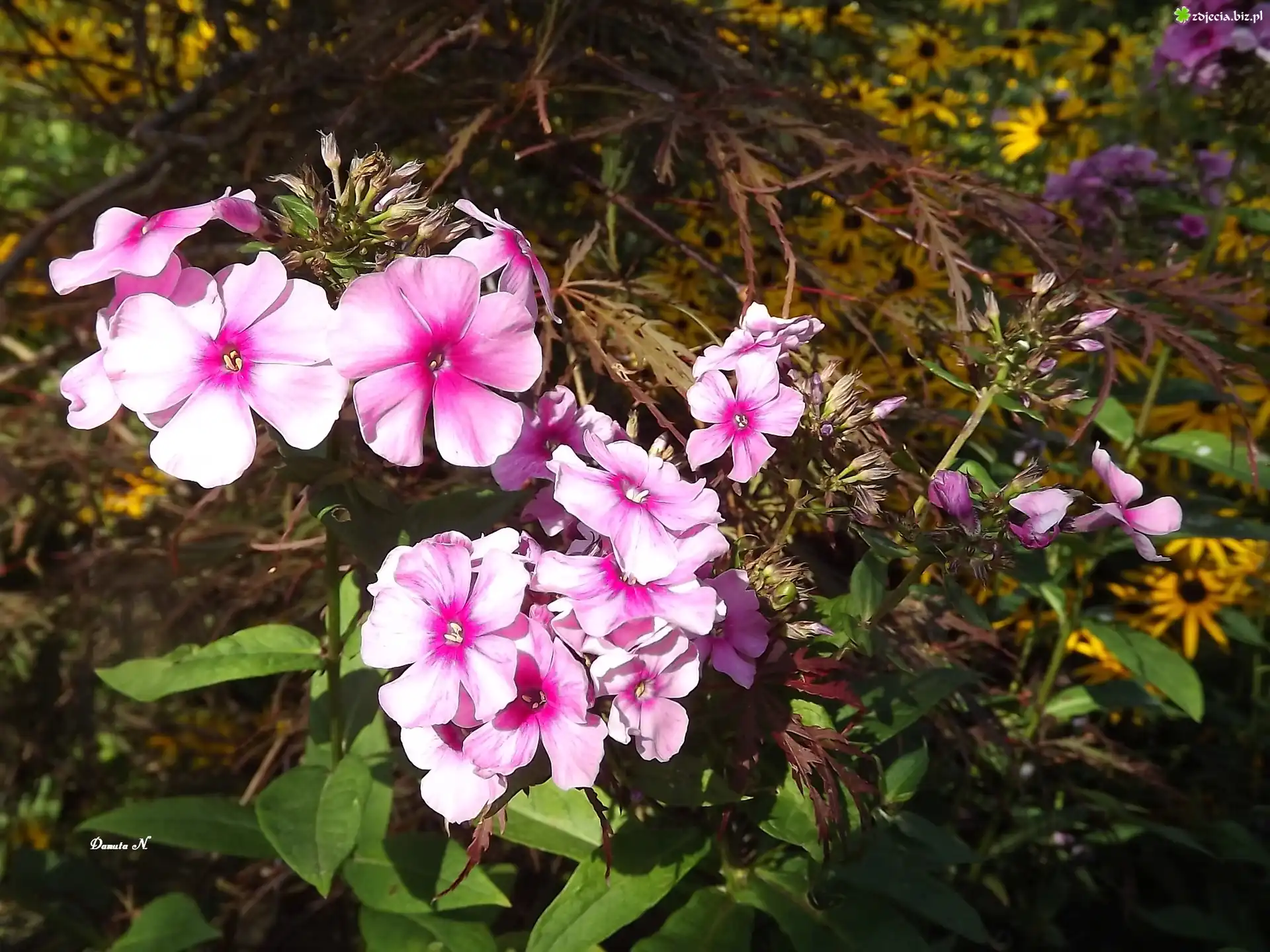 Zdjęcie Floks, Różowy, Trawy, Liście, Ogród, Lato