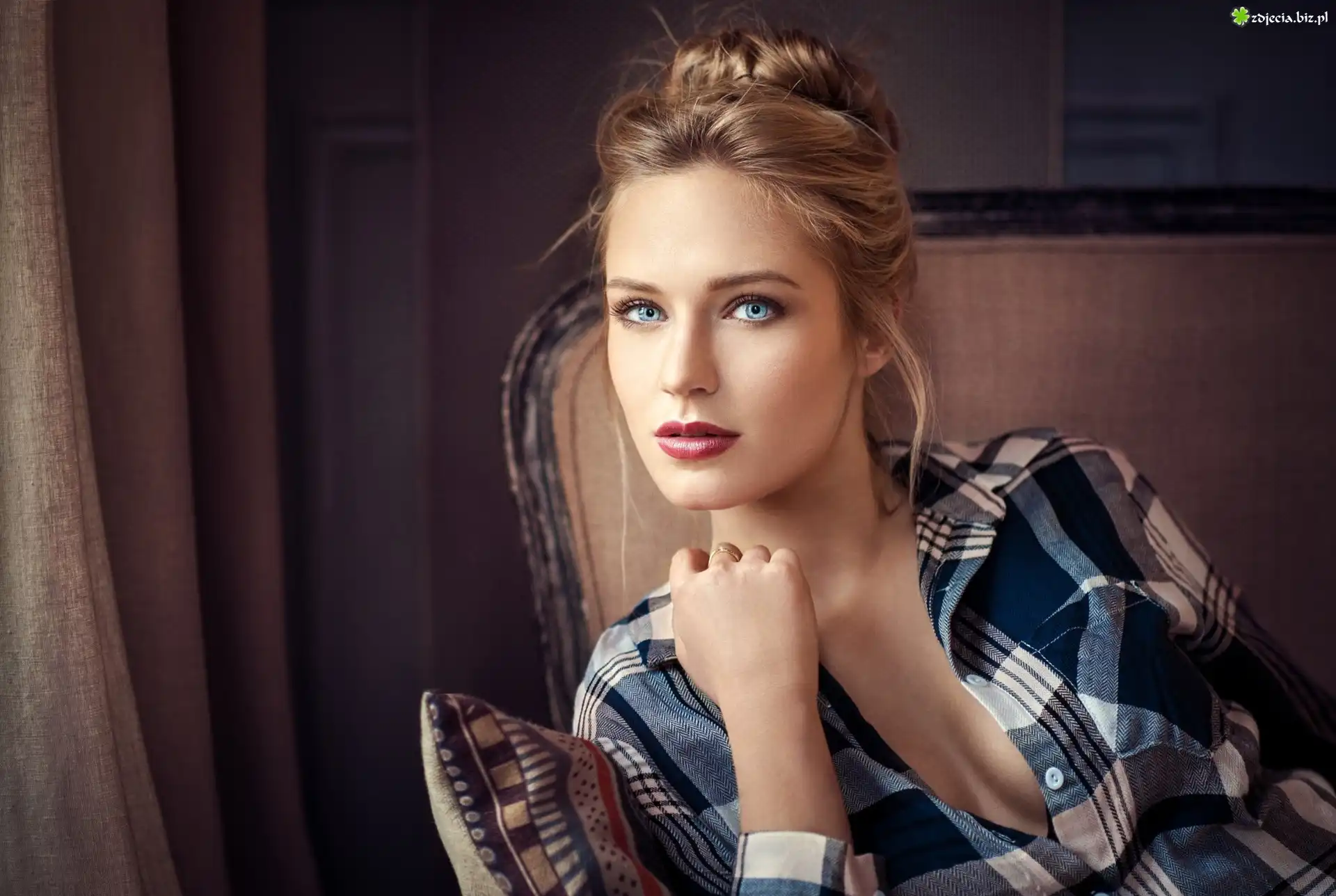 Zdjęcie, Kobieta, Fotel, Poduszka