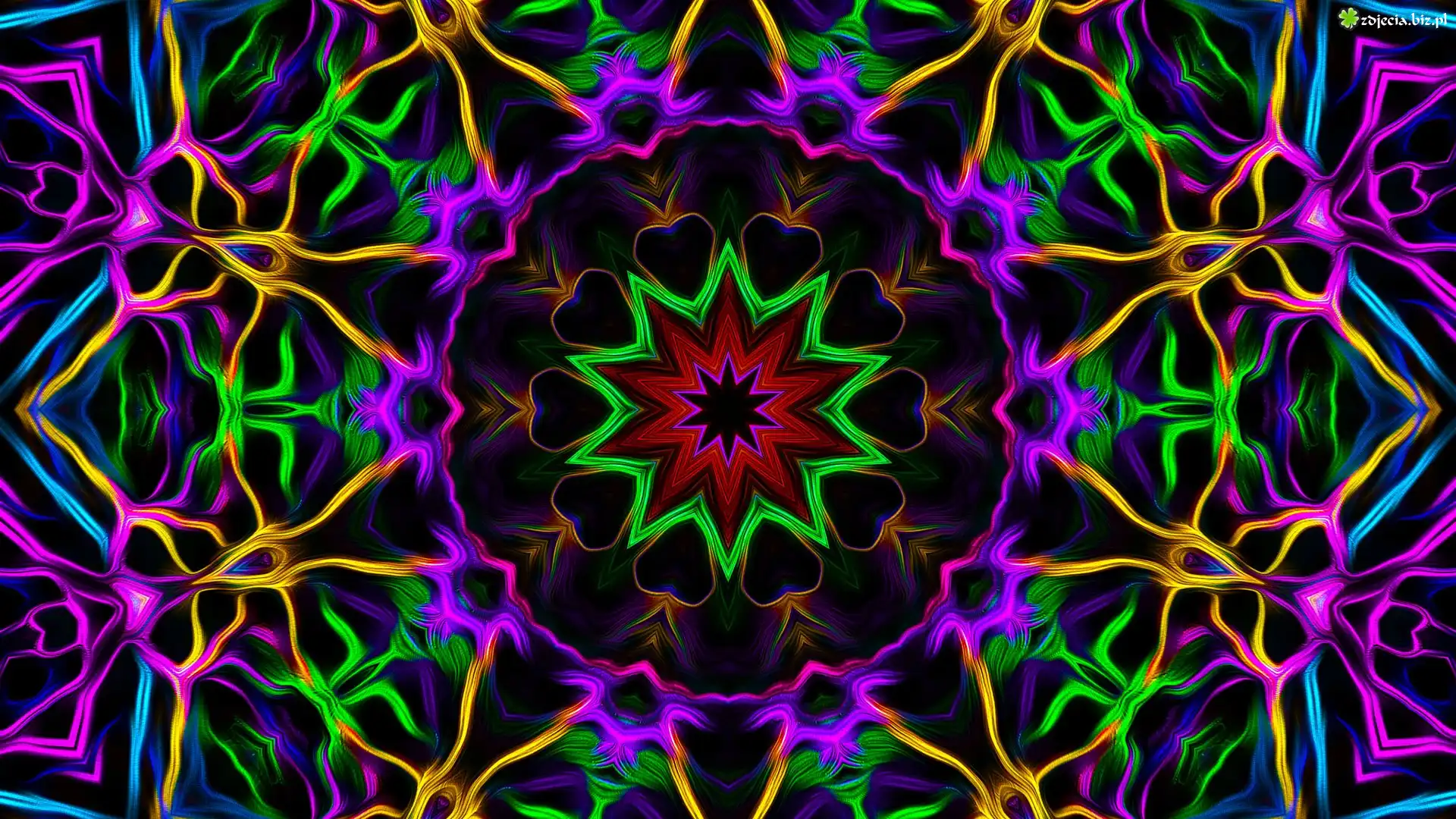 Zdjęcie Fraktal, Kolorowe, Wzory, Gwiazda, Serduszka, Linie