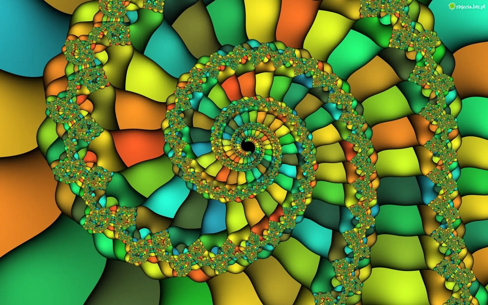 Zdjęcie Fraktal, Kolorowa, Spirala, Zieleń