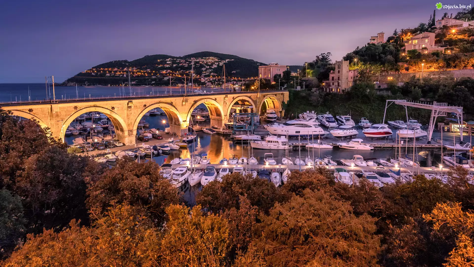 Zdjęcie Most, Port jachtowy, Przystań, Jachty, Motorówki, Mandelieu la Napoule, Francja