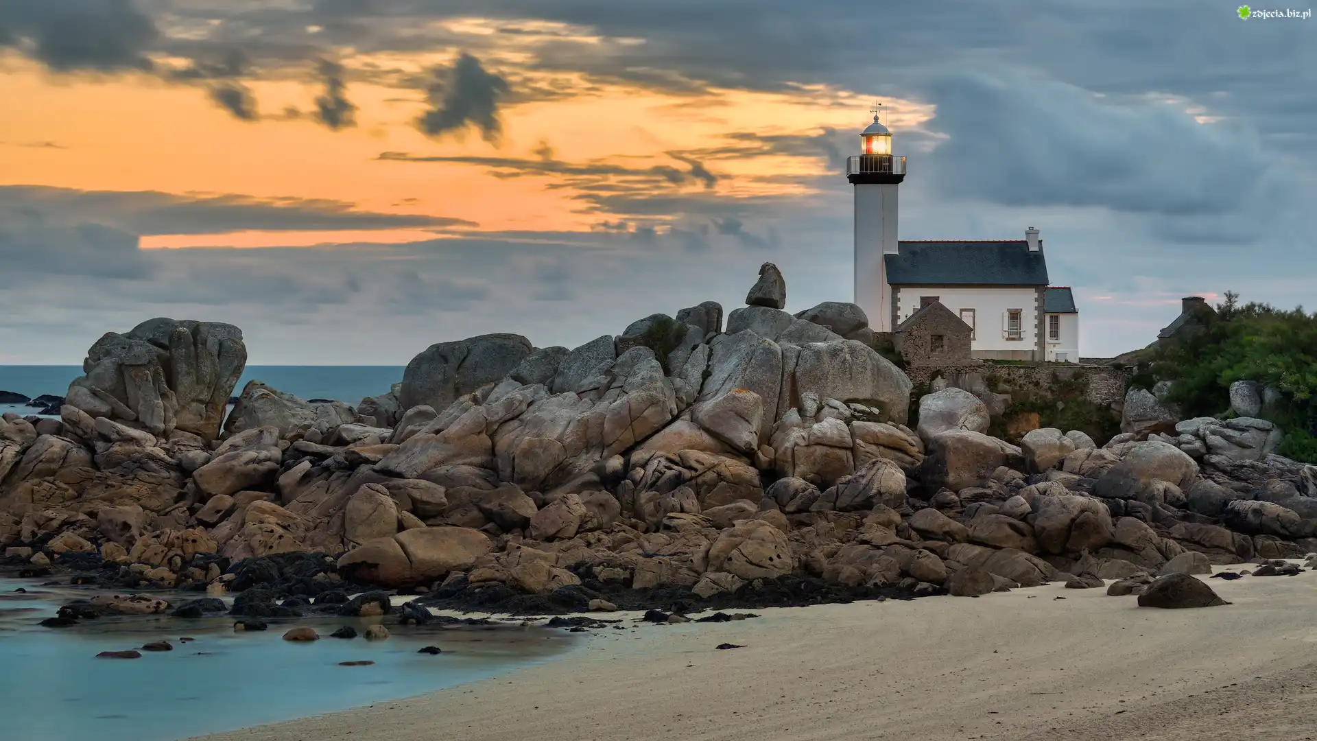 Zdjęcie Skały, Latarnia morska, Phare de Pontusval, Brignogan-Plage, Francja