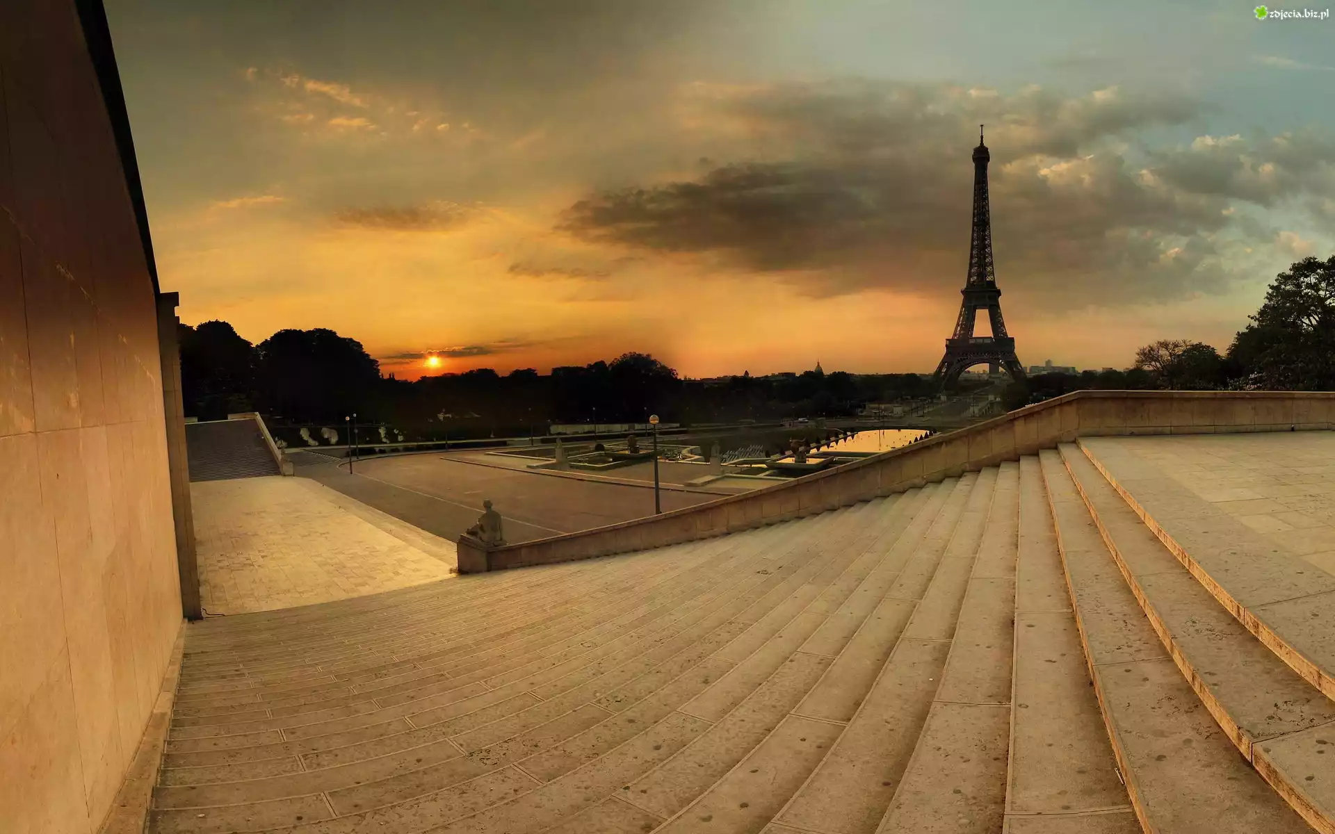 Zdjęcie Francja, wieża, Eiffla, Schody, Zachód, Słońca