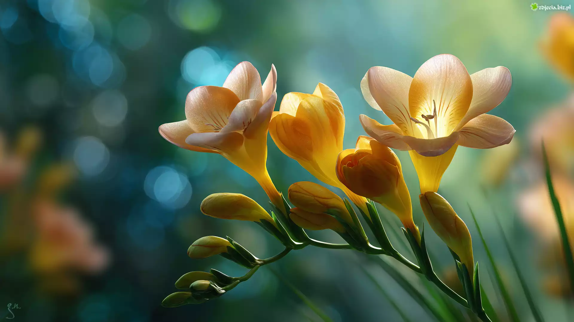 Zdjęcie Żółte, Frezje, Kwiaty, Grafika AI