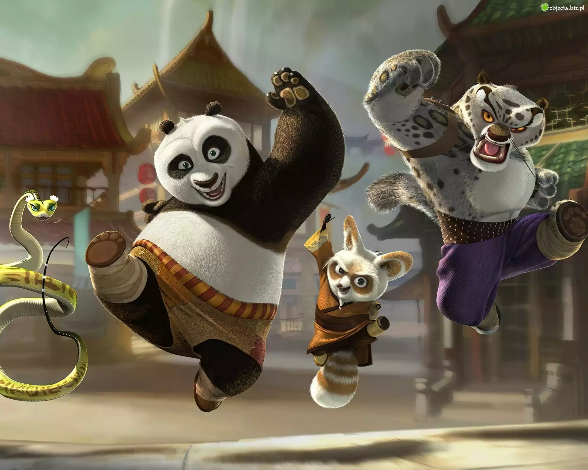 Mały Po, Kung Fu Panda Kung Fu Panda, Tai Lung, przywiązany Panda, miska, Film animowany, Kung Fu Panda Tygrysica, Kung Fu Panda Kung Fu Panda, Mistrz Małpa, ogon Kung Fu Panda Bajka, Kung Fu Panda Kung Fu Panda, owad Kung Fu Panda Kung Fu Panda, skacze Kung Fu Panda, postacie