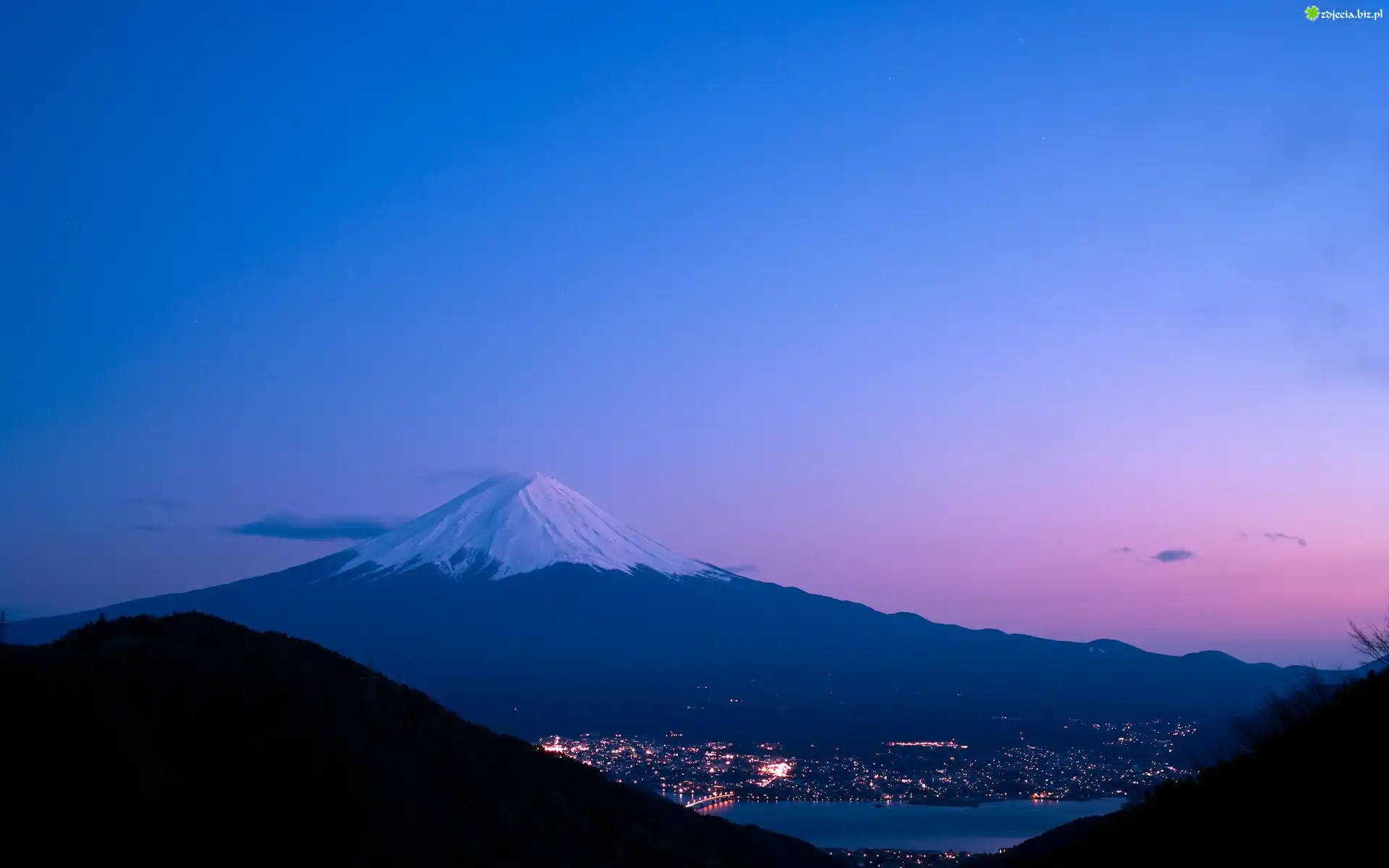 Zdjęcie Fudżi, Miasto, Jezioro, Góry, Noc, Japonia