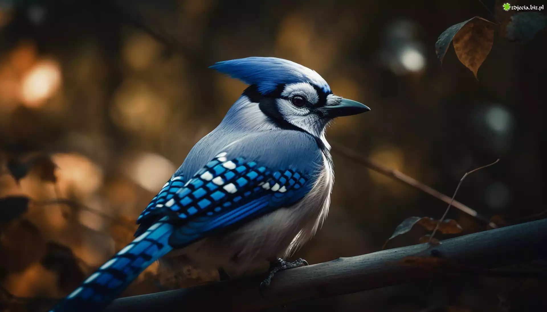 Zdjęcie Modrosójka błękitna, Ptak, Gałąź, Grafika AI