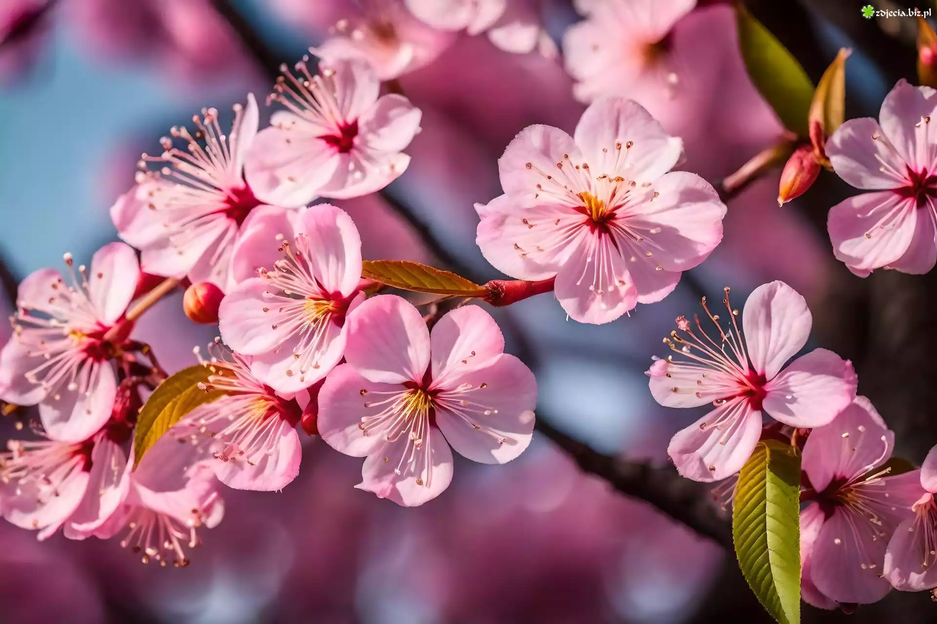 Zdjęcie Różowe, Kwiaty, Listki, Gałąź, Drzewo owocowe, Zbliżenie